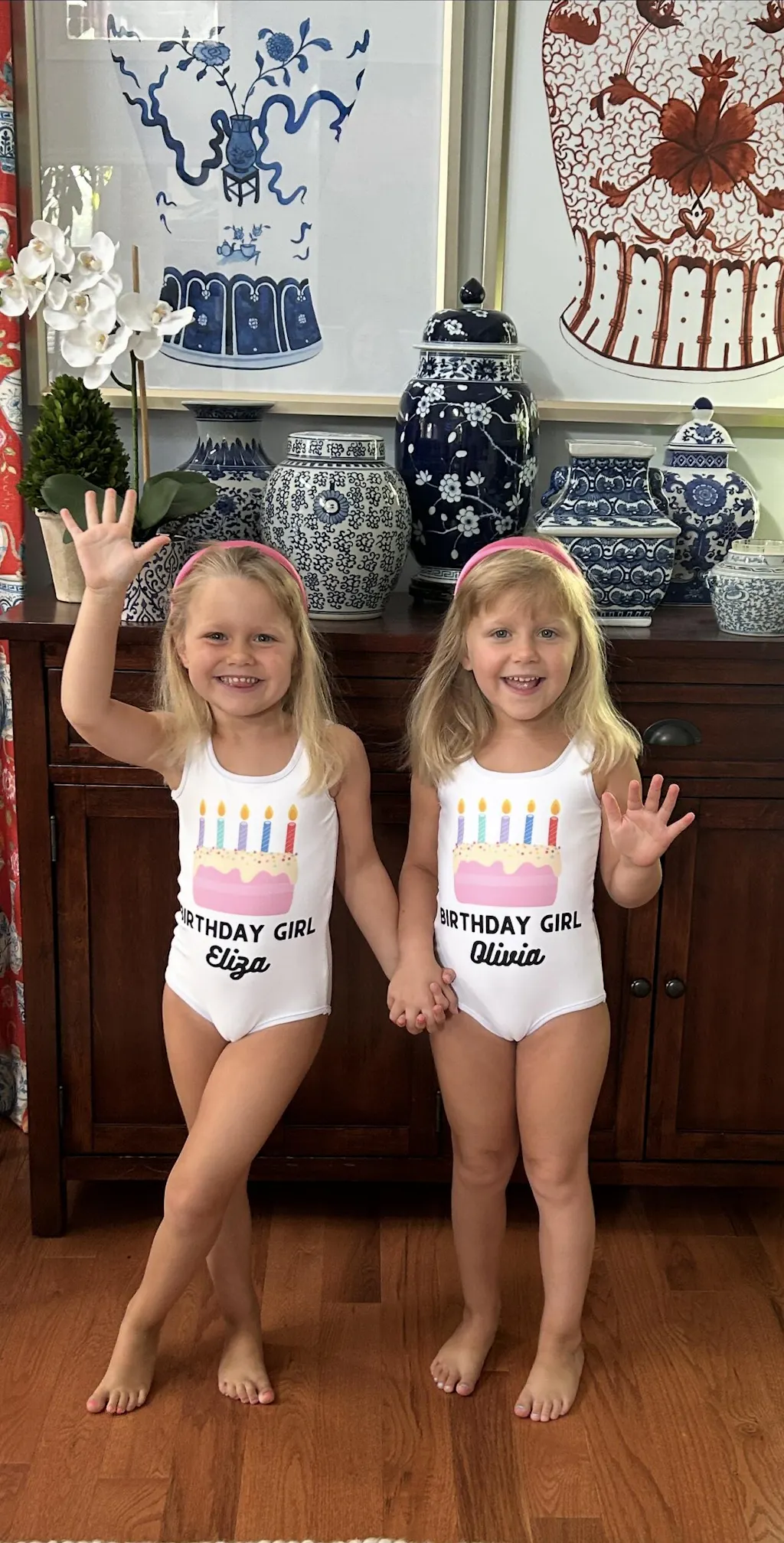 I was so disappointed I didn’t receive these swimsuits in time for my twin granddaughters to wear for their fifth birthday pool party because they were simply adorable & very well made. I was given a full refund for this purchased & allowed to keep the swimsuits. Even though they won’t be able to wear these again I was happy to get a picture of them in the swimsuits to remember their fifth birthday. I will gladly order from Bouvelle again.
