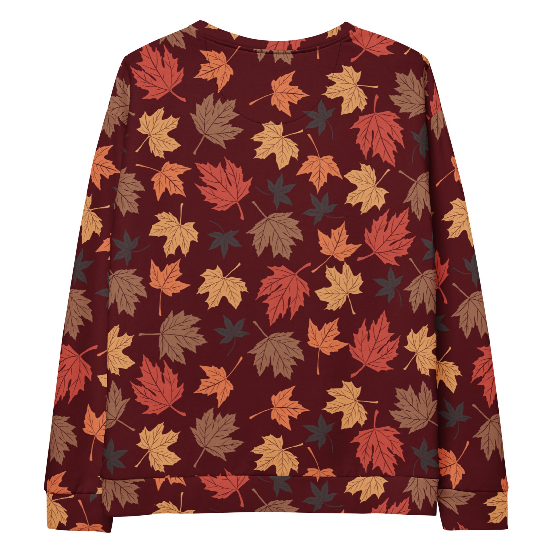 Celebrate cozy season in style with our Autumn Leaves Sweatshirt, featuring an all-over print of fall foliage in warm shades of orange, gold, and deep red. Made with eco-friendly recycled fabric, this burgundy pullover pairs seasonal charm with everyday comfort. The brushed fleece lining keeps it soft and warm, while the unisex fit makes it versatile for everything from fall festivals to cozy nights in.