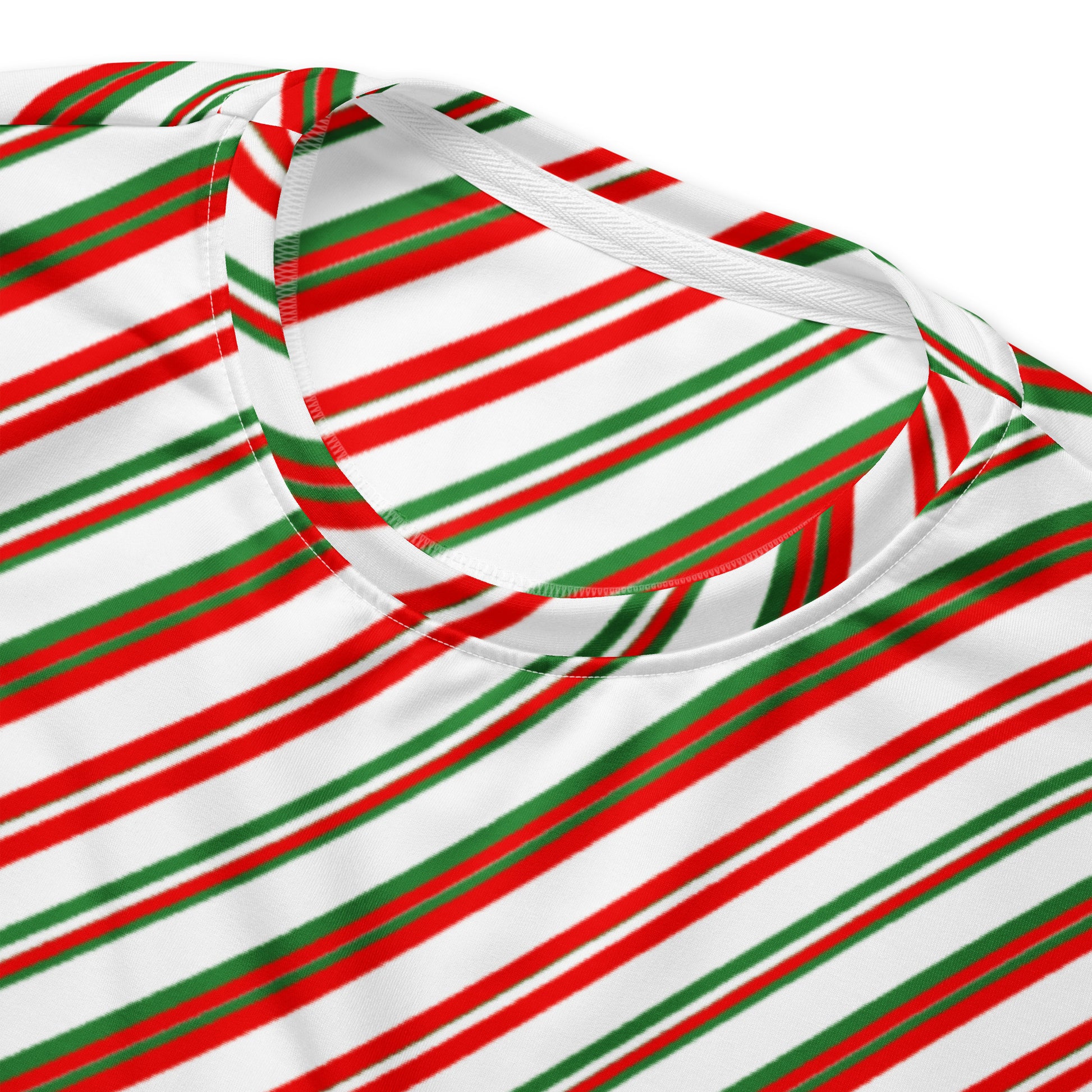 Bring holiday cheer to your wardrobe with our Candy Cane Stripe Christmas Sweatshirt, featuring bold diagonal red, green, and white stripes inspired by classic peppermint candy canes. Made from eco-conscious recycled polyester with a brushed fleece lining, this cozy unisex pullover is perfect for Christmas parties, family gatherings, or just sipping cocoa by the fire.