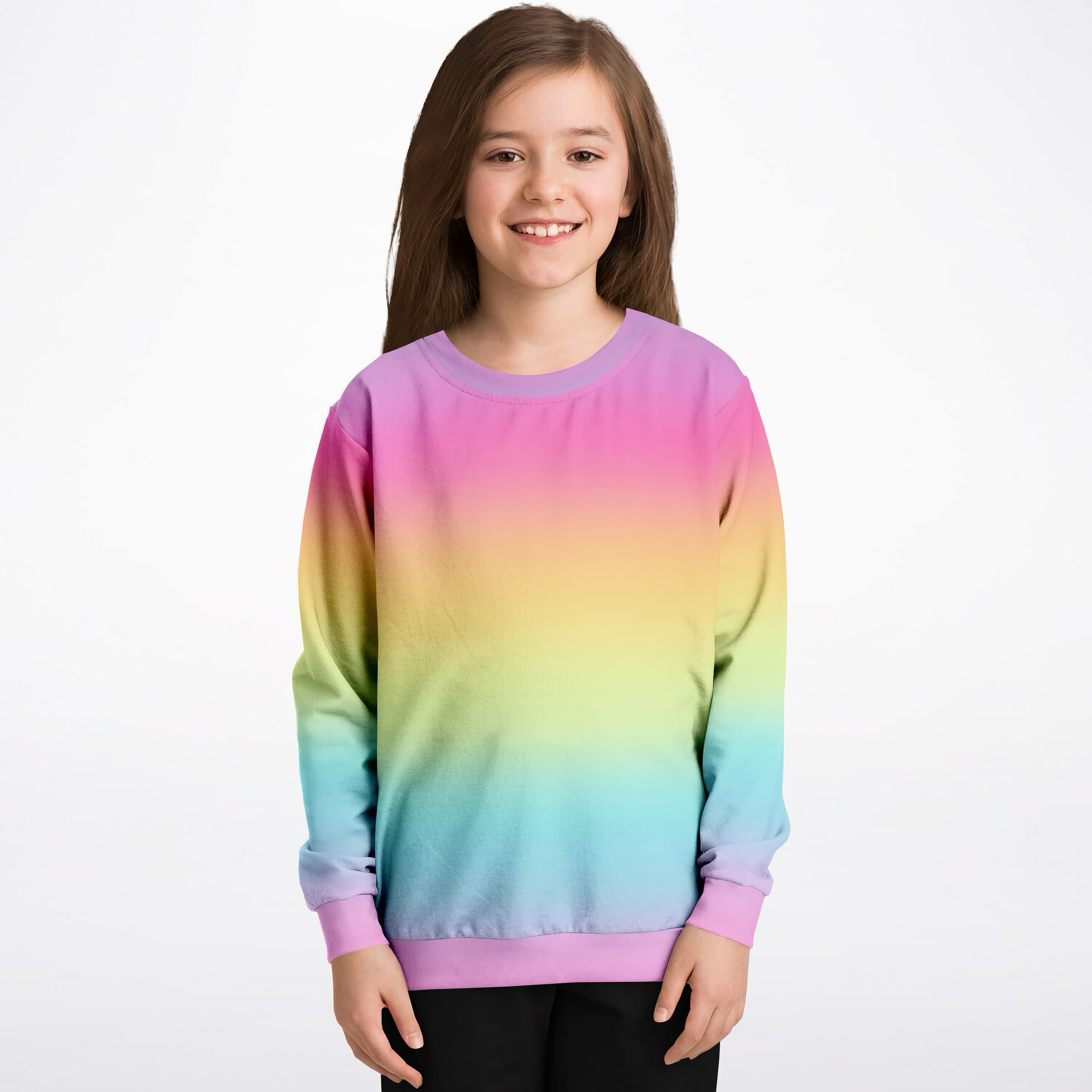 Girls Bright Rainbow Sweatshirt – Cozy Cotton Fleece or Lightweight Sports Fabric