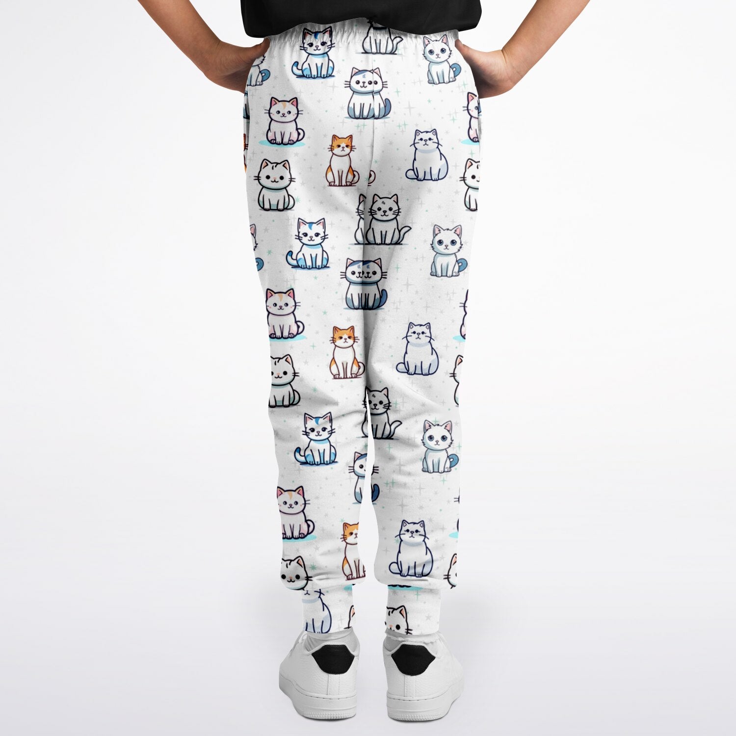 Perfect for kids and toddlers who can’t get enough of cute kittens, these cat-patterned joggers add a fun and cozy touch to any outfit!