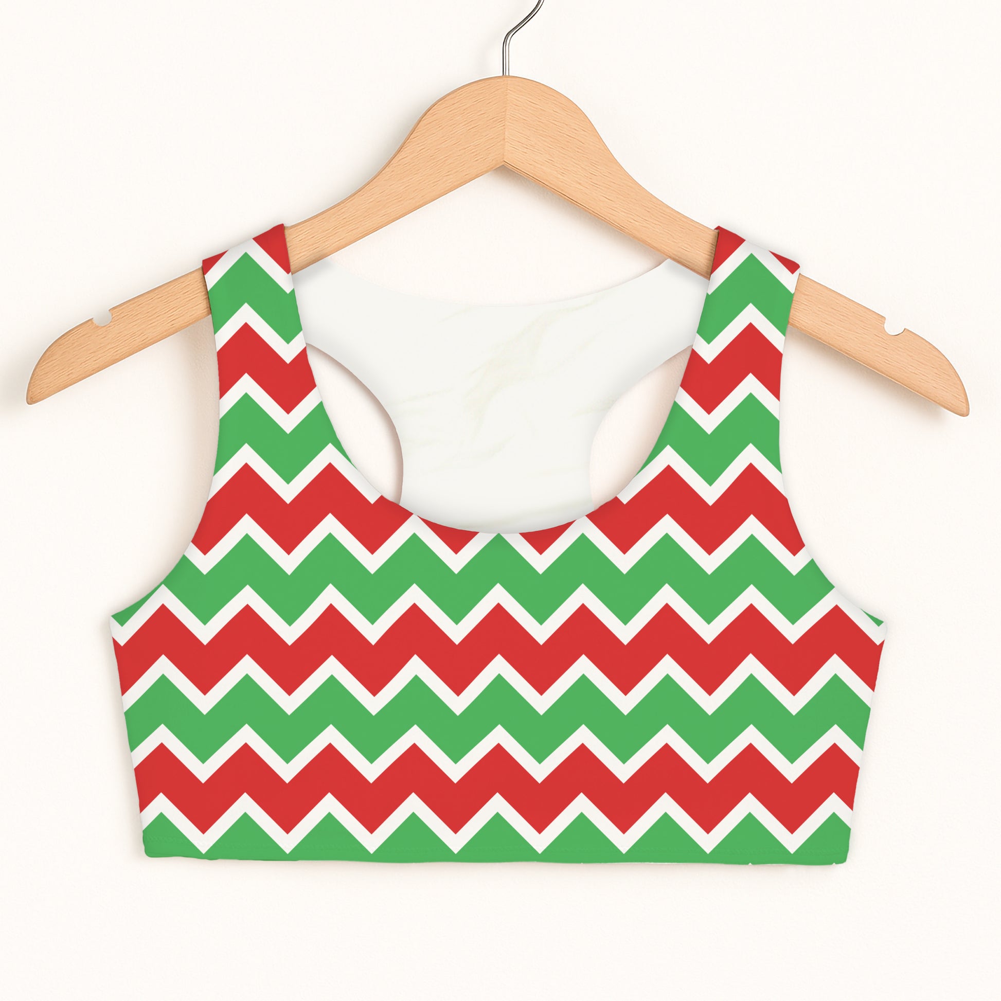 Girls Christmas Chevron Sports Bra — Quick Drying, Double Layered Comfort