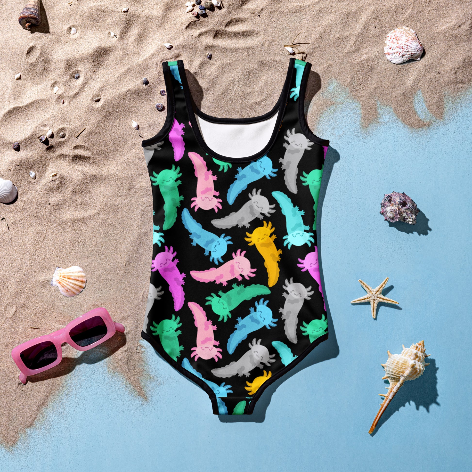 Girls Colorful Axolotl Buttery Soft Swimsuit With UPF 50+