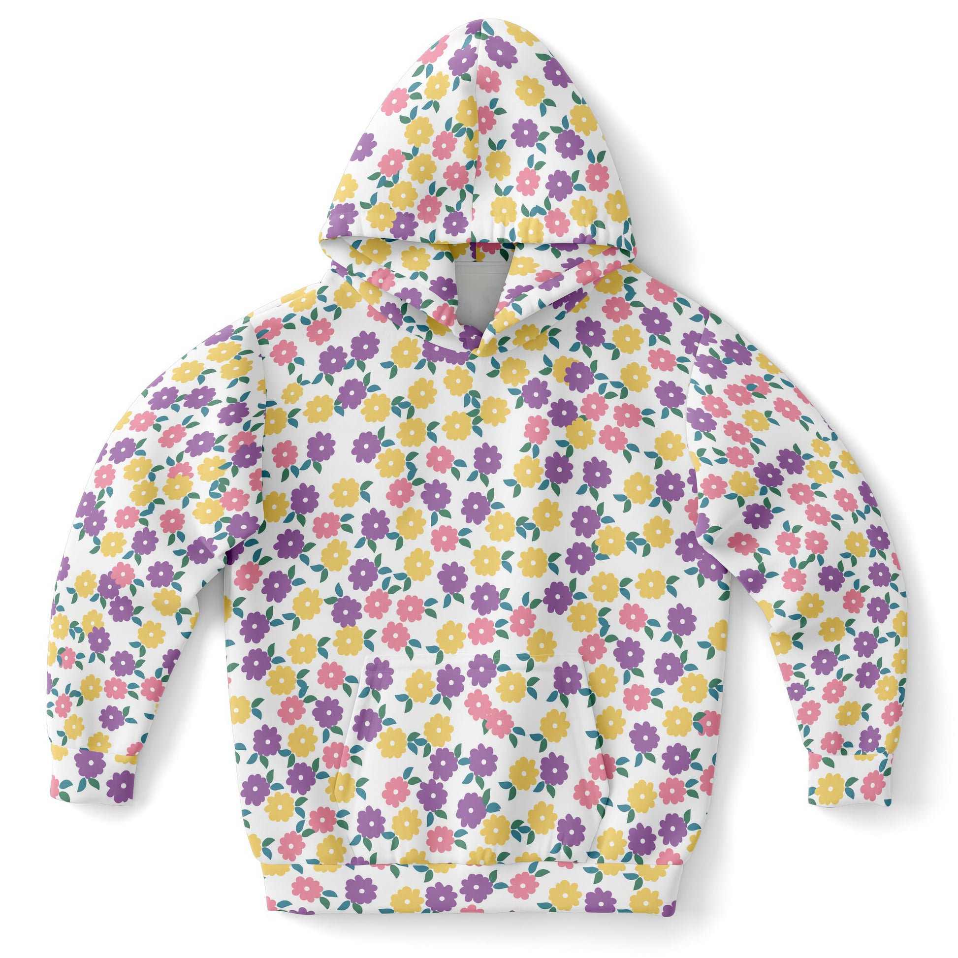 Fresh and fun, the Girls Floral Hoodie is a burst of color for her everyday style. Featuring an all-over print of purple, pink, and yellow flowers, this sweatshirt is perfect for toddlers, kids, and teens who love cheerful, nature-inspired looks. Comfortable, durable, and playful, it’s great for school, birthdays, or simply brightening up her day.