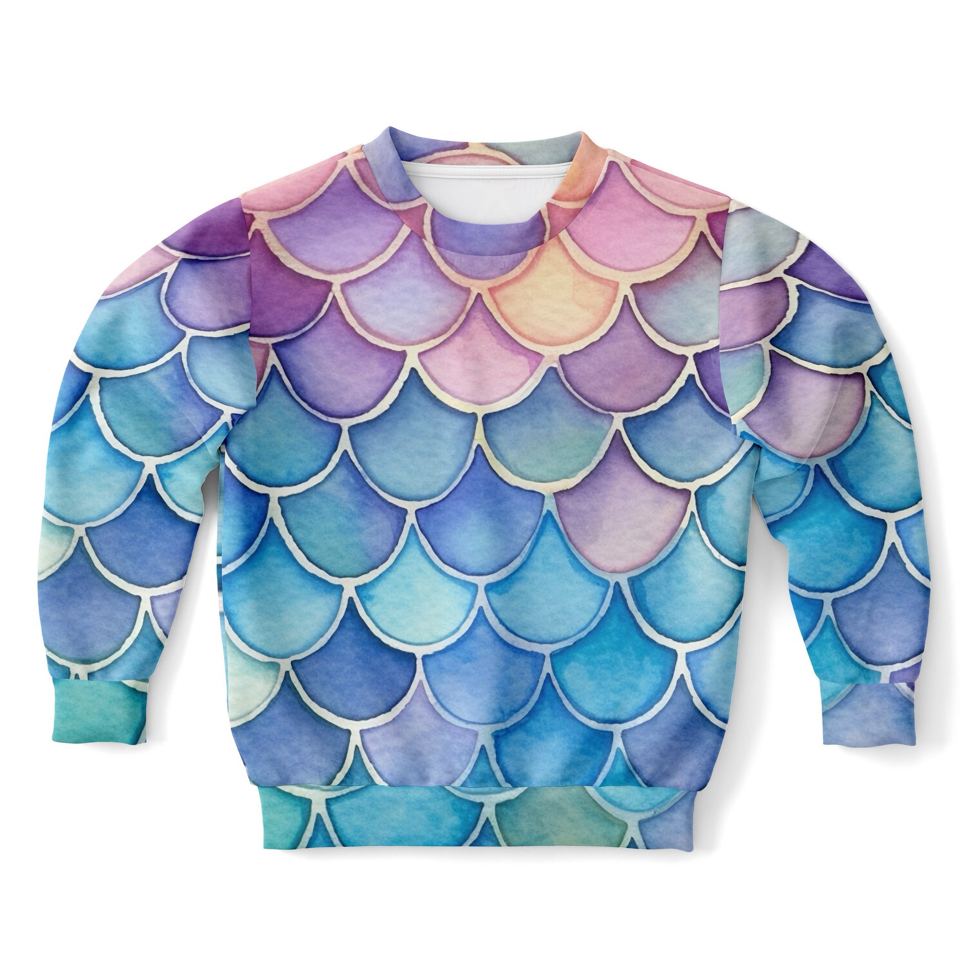 Girls Colorful Mermaid Scales Sweatshirt – Cozy Cotton Fleece or Lightweight Sports Fabric