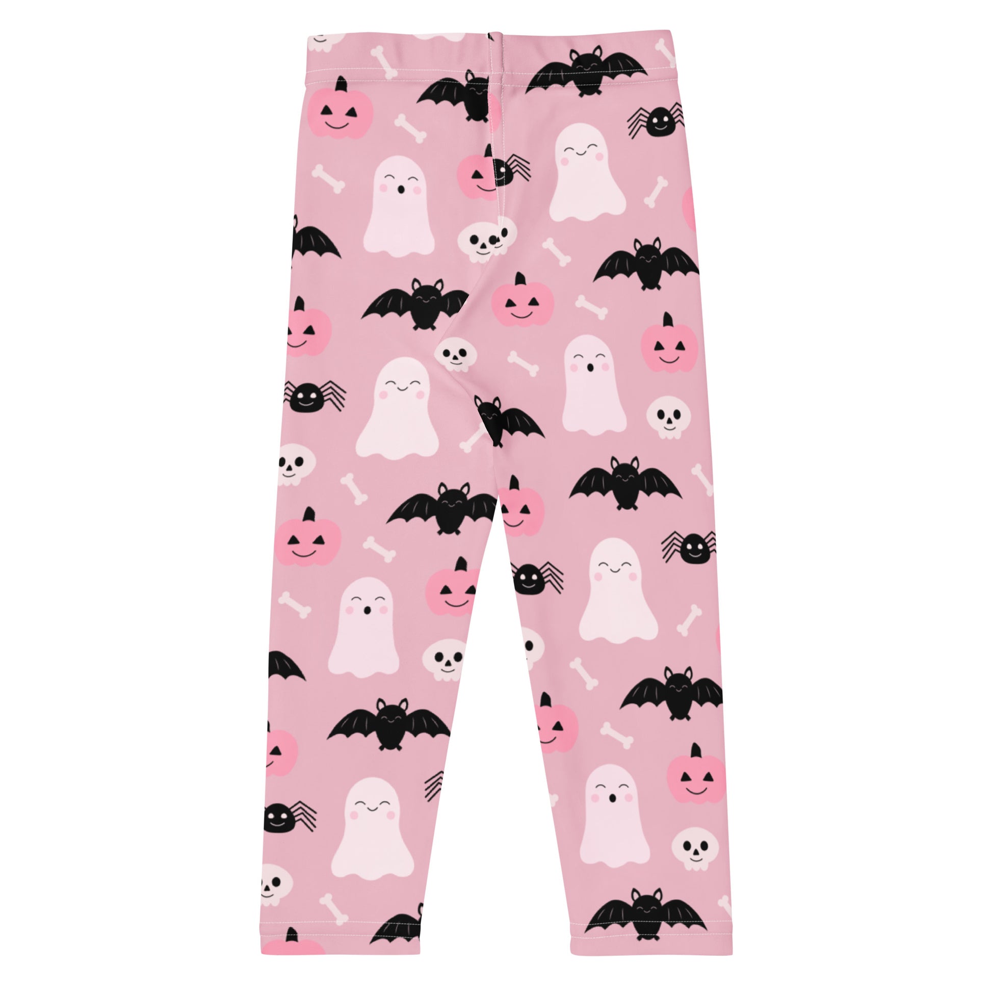 Girls Cute Ghost And Bats Pink Halloween Buttery Soft Leggings