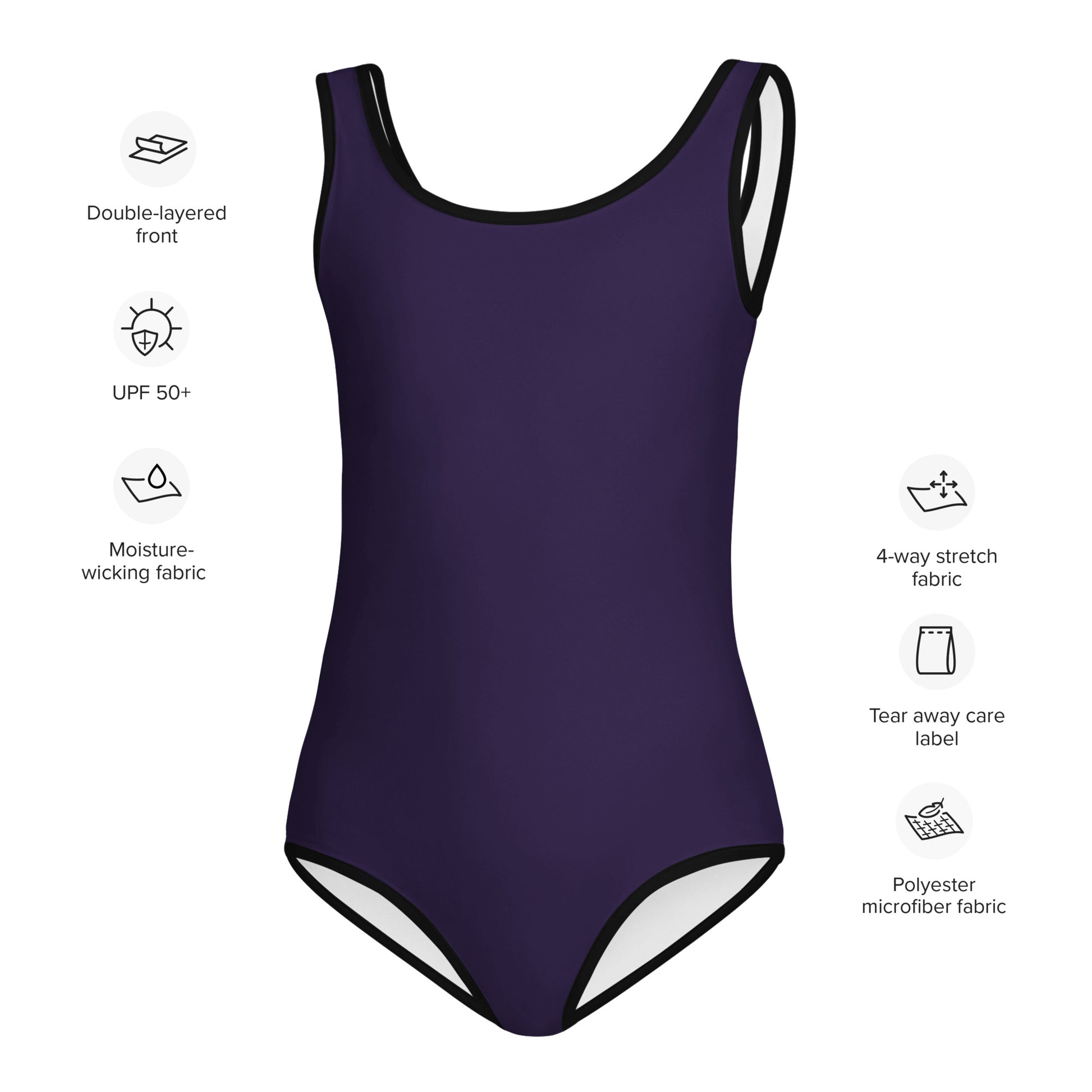 Simple and perfect for summer adventures—this dark purple one-piece swimsuit delivers bold color with timeless style. Whether she’s heading to swim lessons, a pool party, or beach vacation, this suit is made to keep up and stand out.