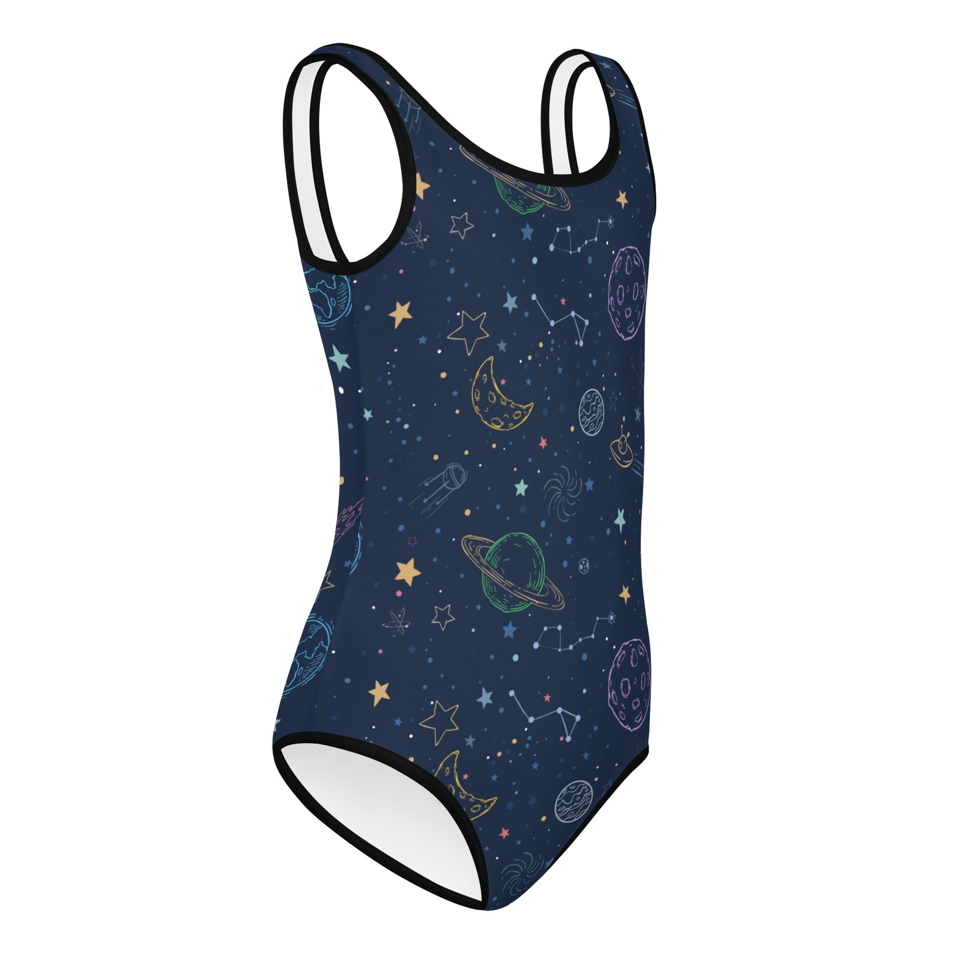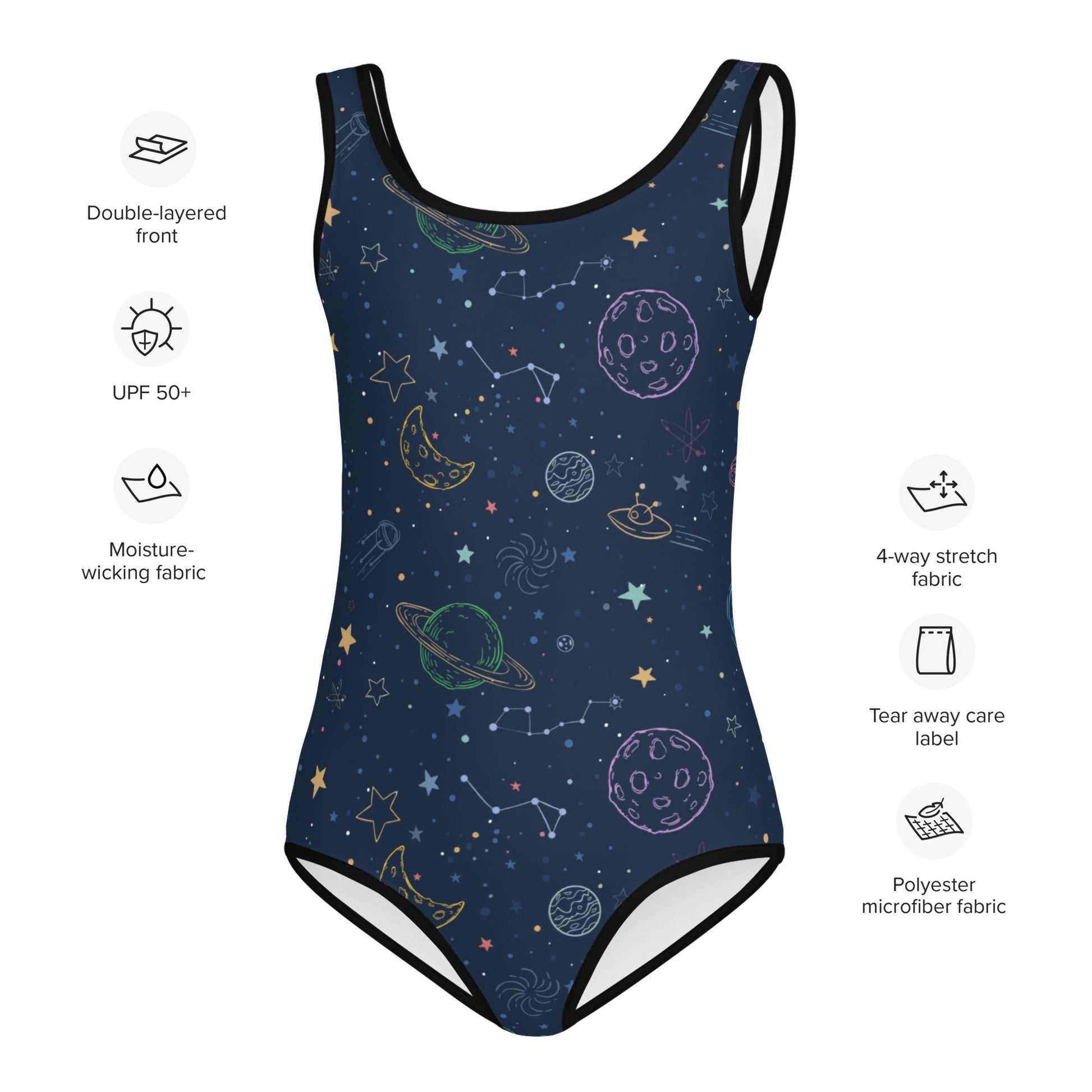 Whether she's twirling like Saturn's rings or soaring like a shooting star, this space-themed leotard is perfect for girls who reach for the stars.