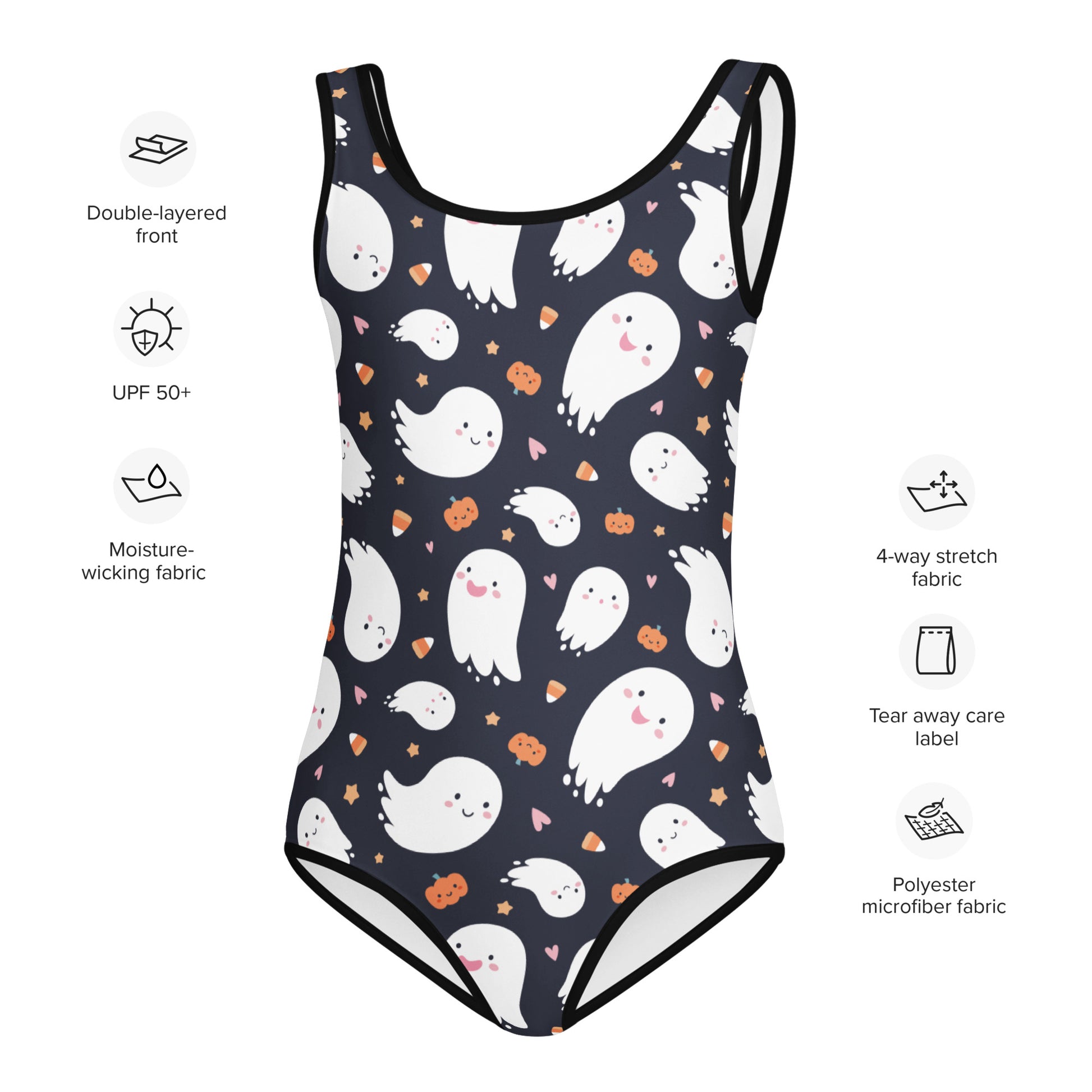 Girls Ghost Candy Corn Pumpkin Halloween Swimsuit