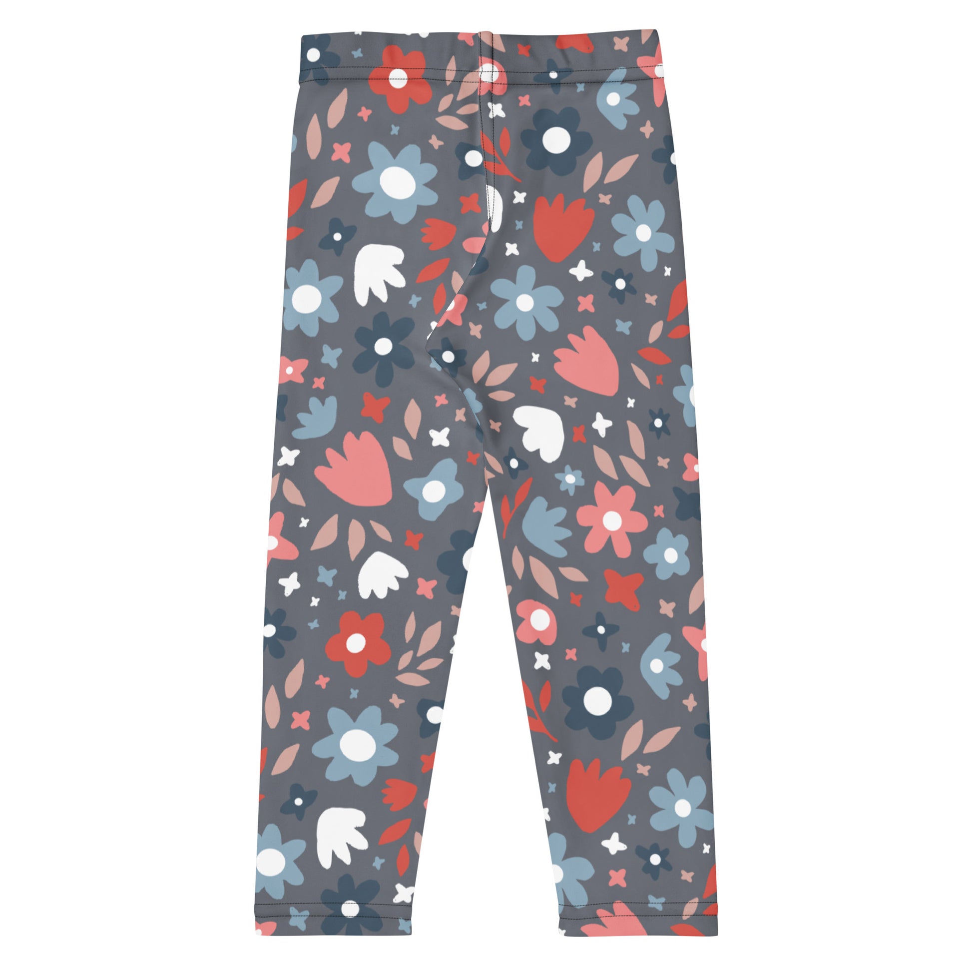 Fresh florals meet cozy comfort in these girls’ grey floral leggings! Designed with a modern charcoal-grey background and pops of red, blush, blue, and white flowers, this colorful print gives her wardrobe a bold, artsy vibe. The fabric is ultra-soft with just the right amount of stretch for school, play, or weekend lounging.