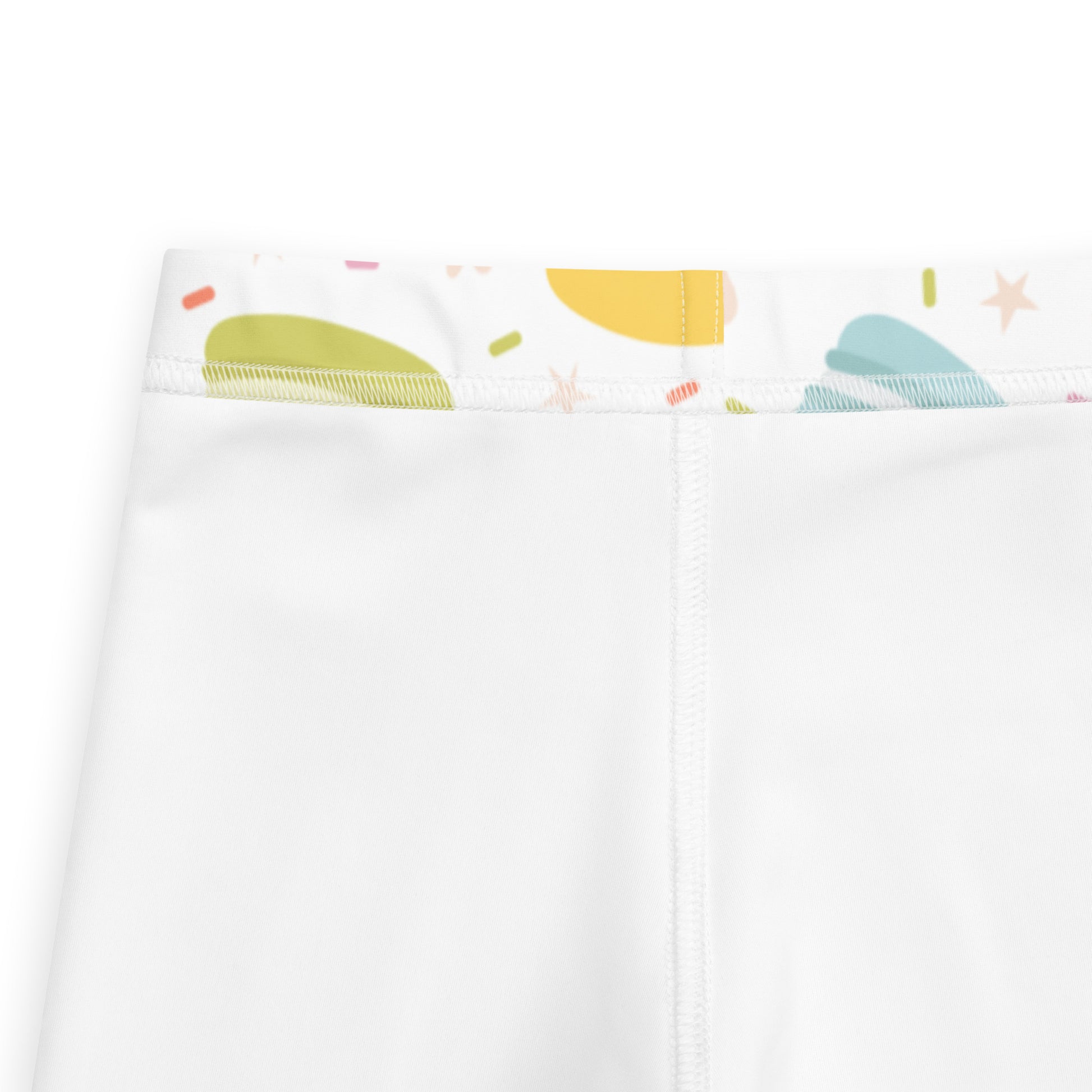 Add a sprinkle of sweetness to her wardrobe with these girls’ macaron leggings. Featuring a pastel rainbow of macarons, sprinkles, and hearts on a crisp white background, these leggings are as fun as her favorite treats. Made with buttery-soft stretch fabric, they’re comfortable enough for toddlers and kids to wear all day—whether she’s at school, at play, a birthday party, or just lounging around. Parents will love the UPF 50+ protection and durable stitching that make them as practical as they are adorable.