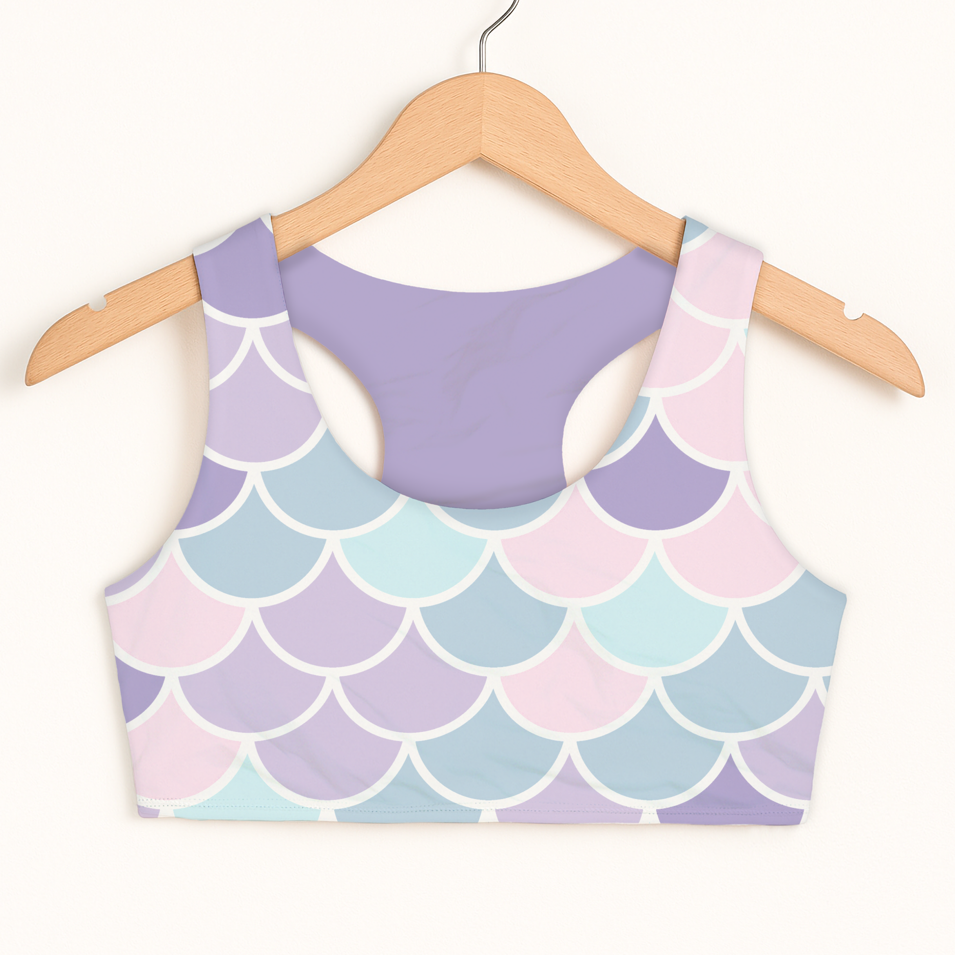 Girls Mermaid Scales Sports Bra — Quick Drying, Double Layered Comfort