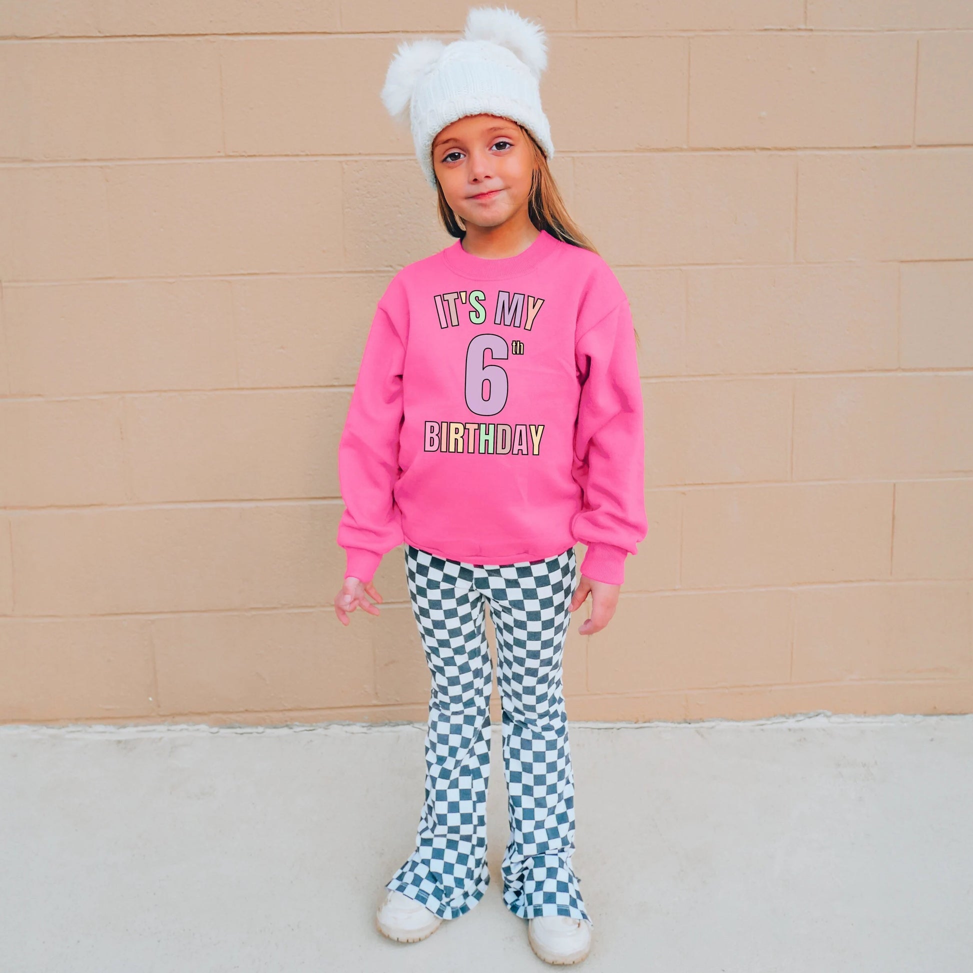 Girls Custom Age Neon Pink Birthday Sweatshirt