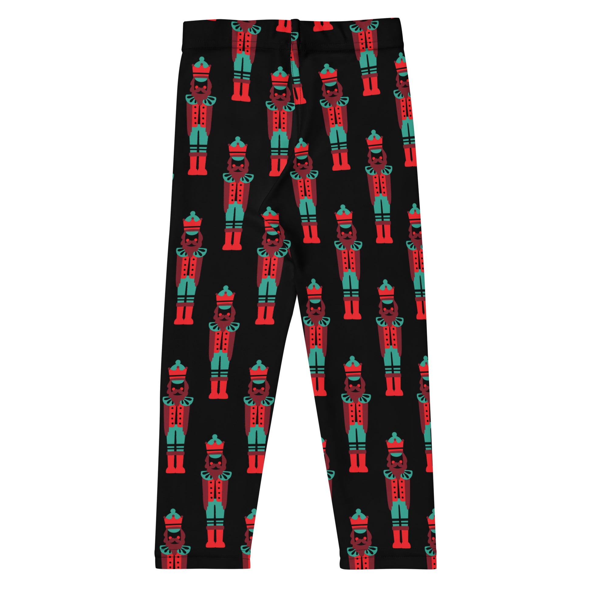 Add a classic holiday twist to her wardrobe with these Girls Nutcracker Leggings, featuring bold red and green nutcracker soldiers on a deep black background. Whether she’s headed to a holiday party, Christmas performance, or cozying up at home, these leggings bring festive flair with every step.