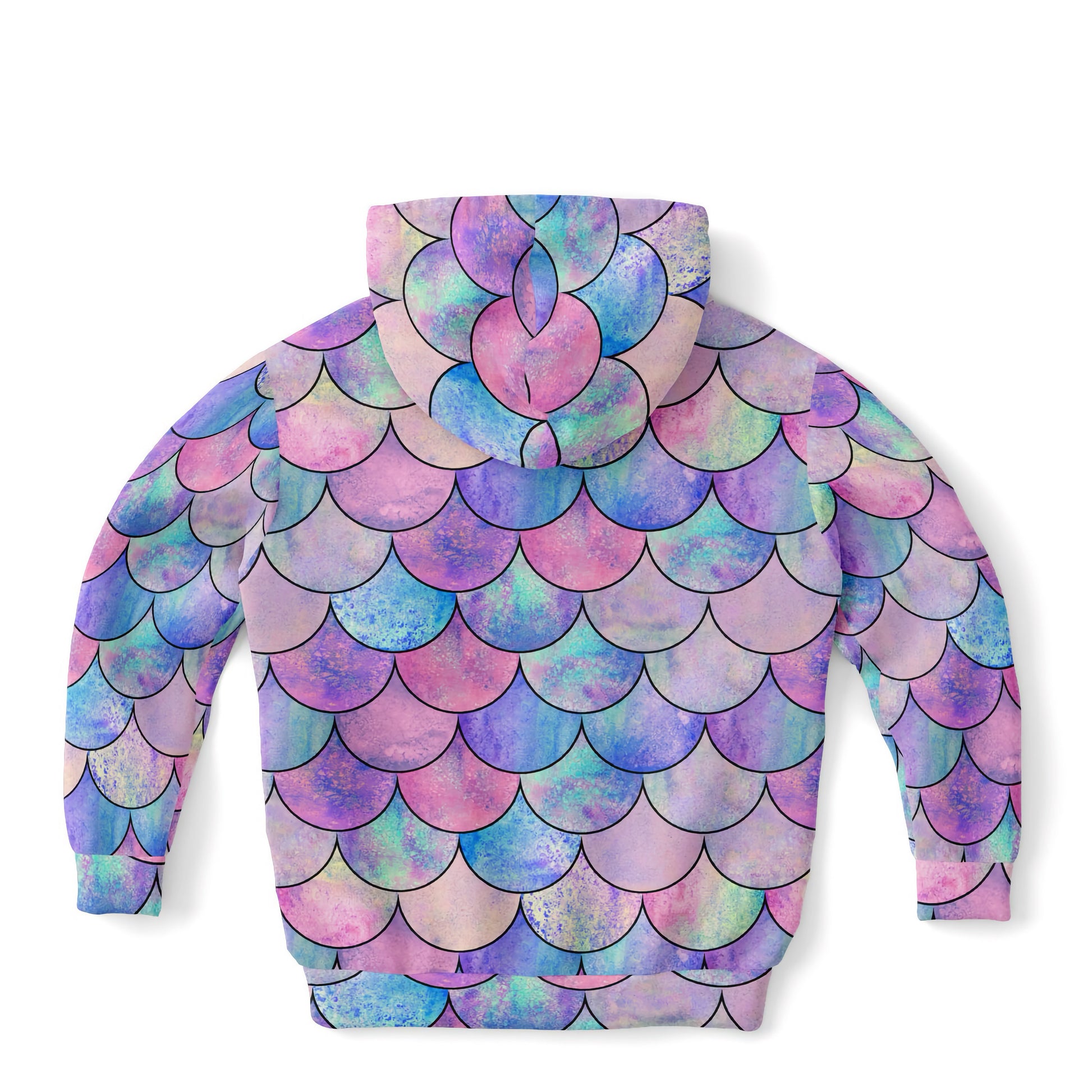 Girls Pastel Mermaid Hoodie – Cozy Cotton Fleece or Lightweight Sports Fabric