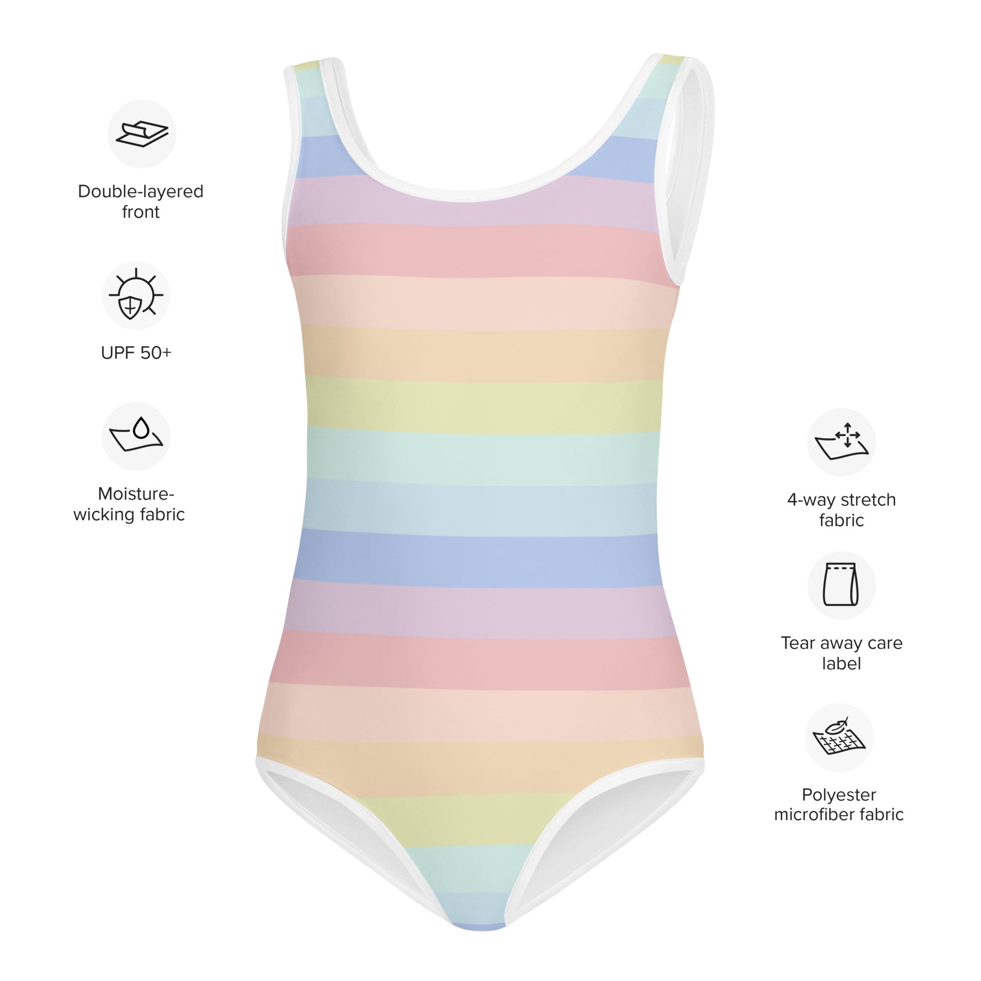 Girls Pastel Striped Rainbow Buttery Soft Swimsuit With UPF 50+
