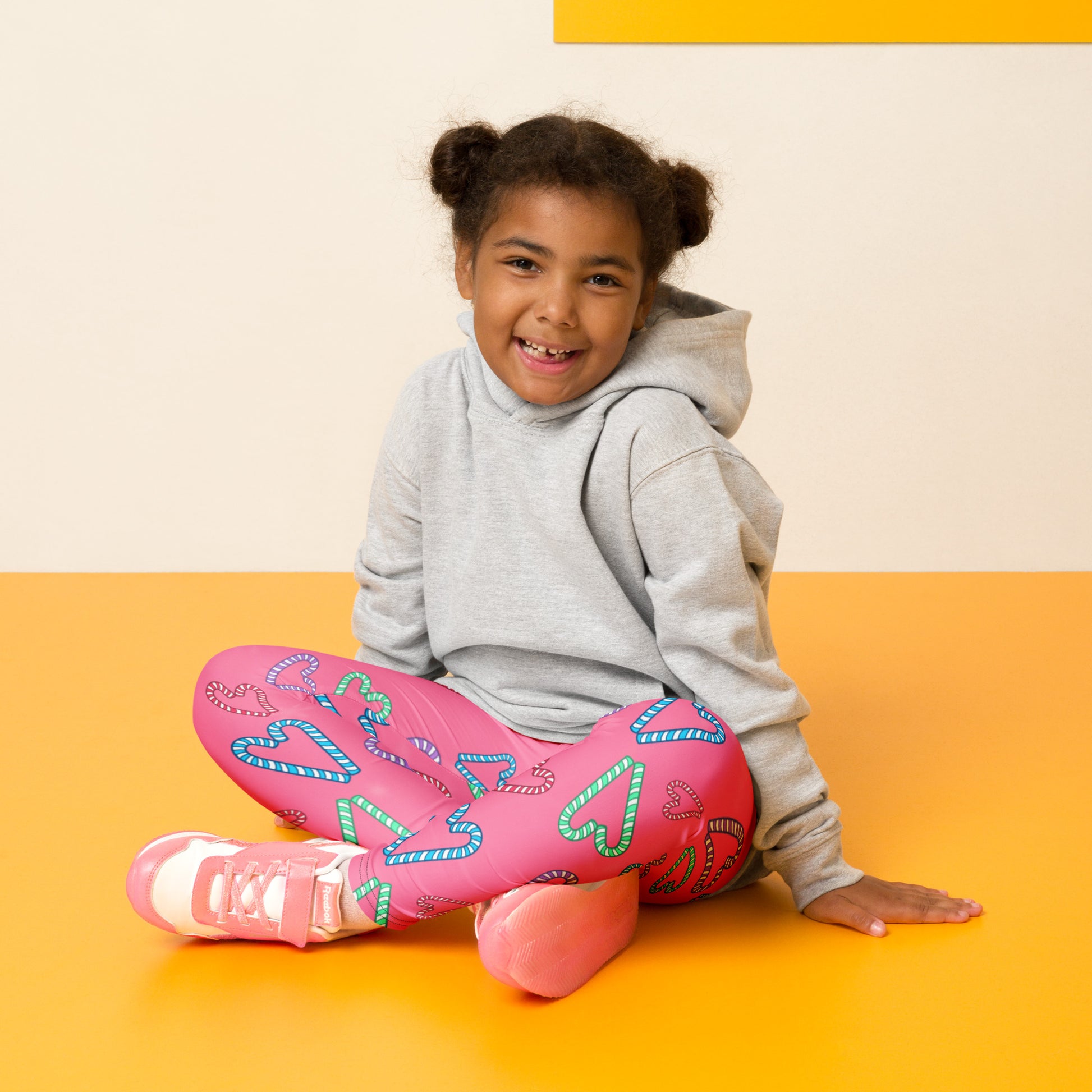 These pink candy cane heart leggings are the perfect mix of sweet and festive! Featuring bold, playful heart shapes made from colorful striped candy canes, they’re a joyful choice for Christmas parties, Valentine's Day, or everyday fun. Made for girls who love to sparkle, snack, and stand out.