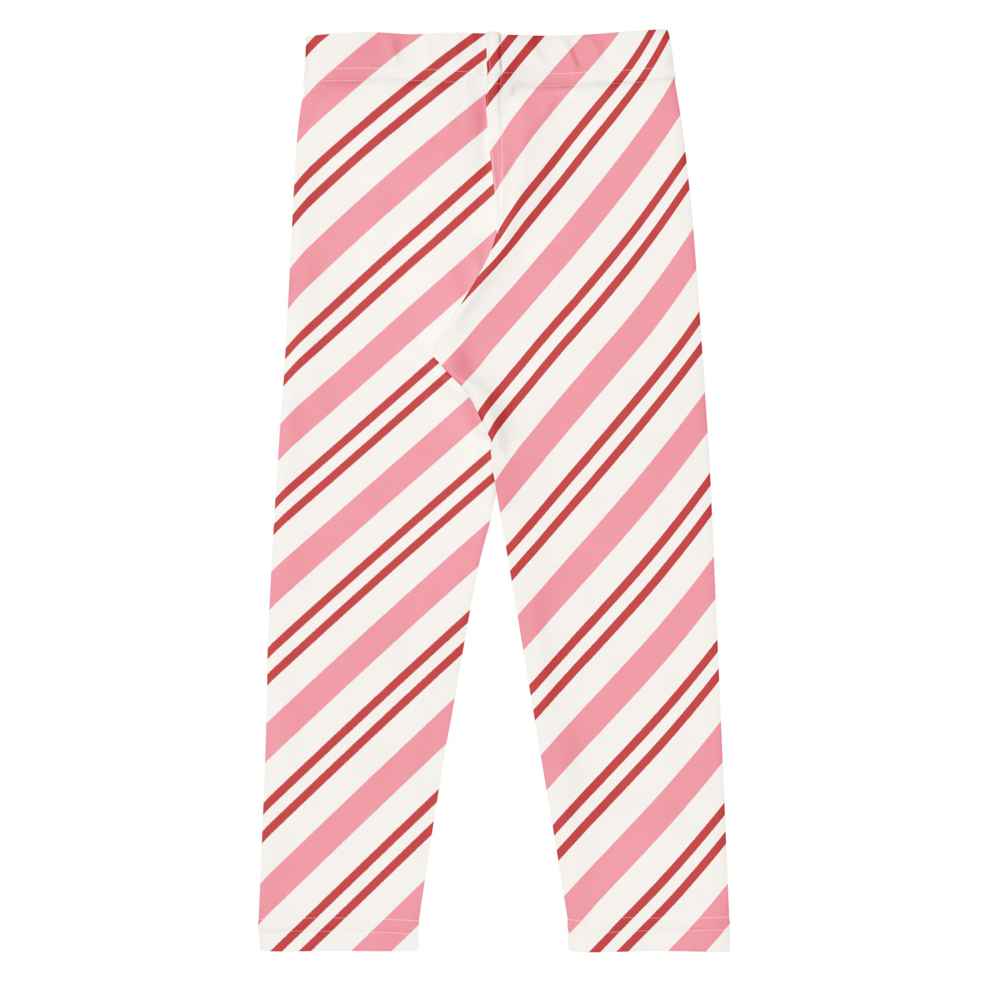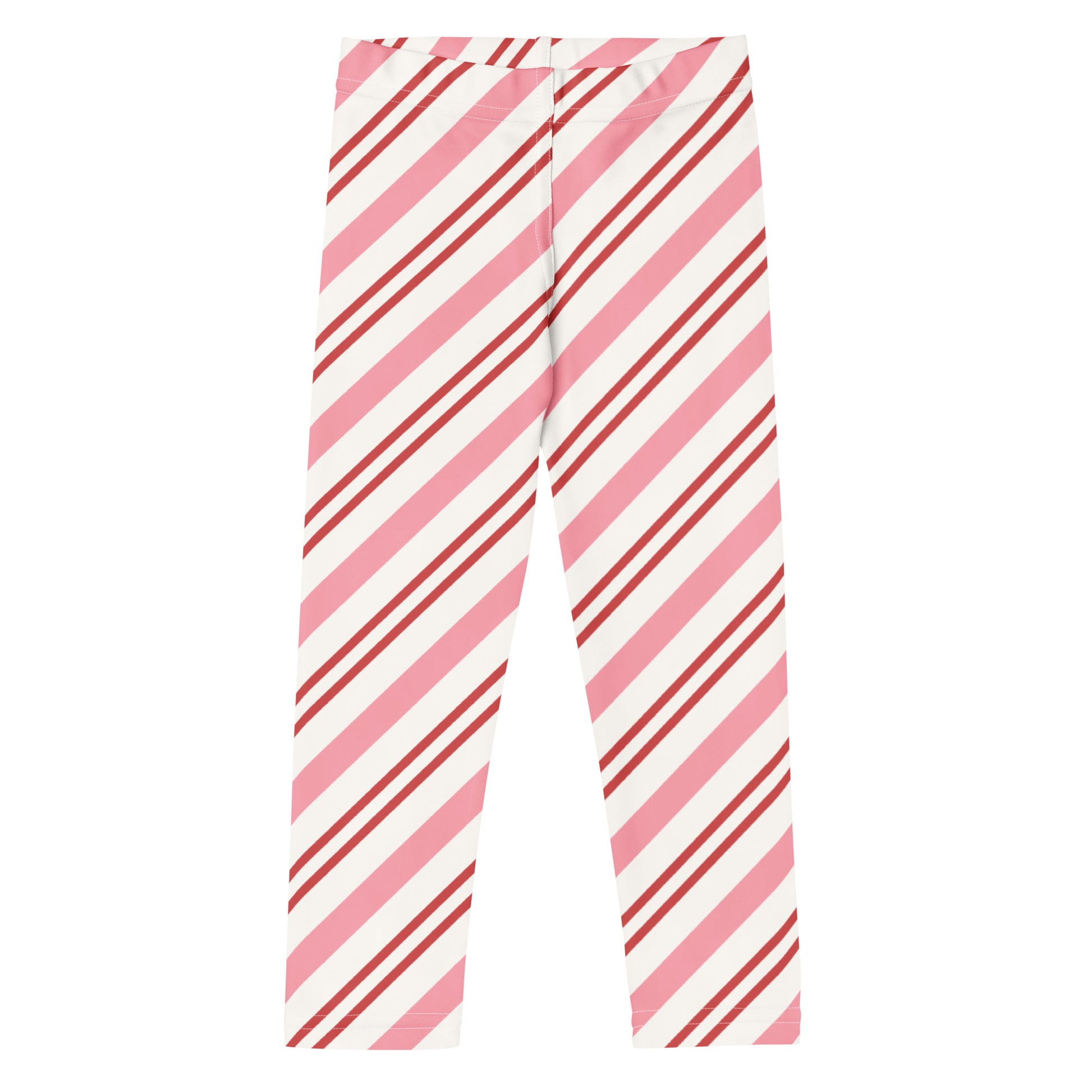 Make her holiday season extra merry with these adorable Girls Candy Cane Stripe Leggings! Featuring pink, red, and white diagonal stripes in a festive peppermint design, these cozy leggings are the perfect blend of cute and comfy.