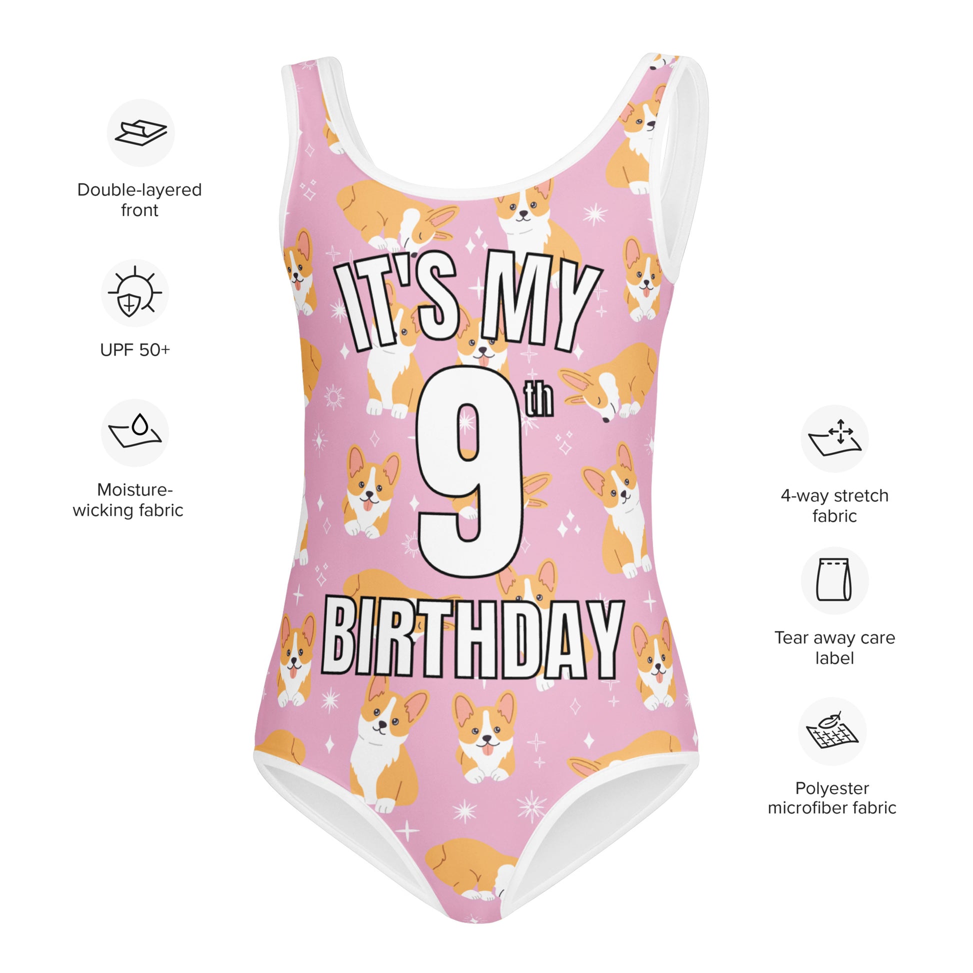 Girls Pink Corgi Dog Custom Age It's My Birthday Swimsuit