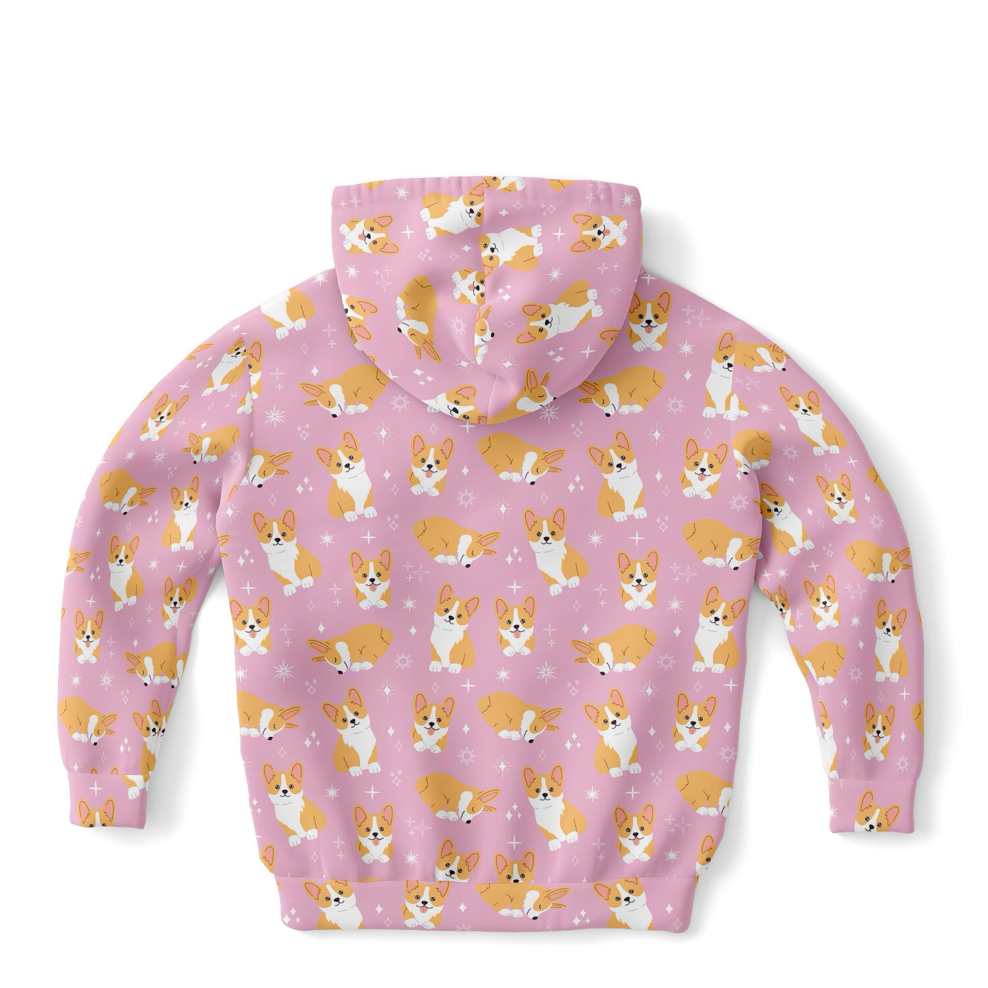 Girls Pink Corgi Dog Hoodie – Cozy Cotton Fleece or Lightweight Sports Fabric