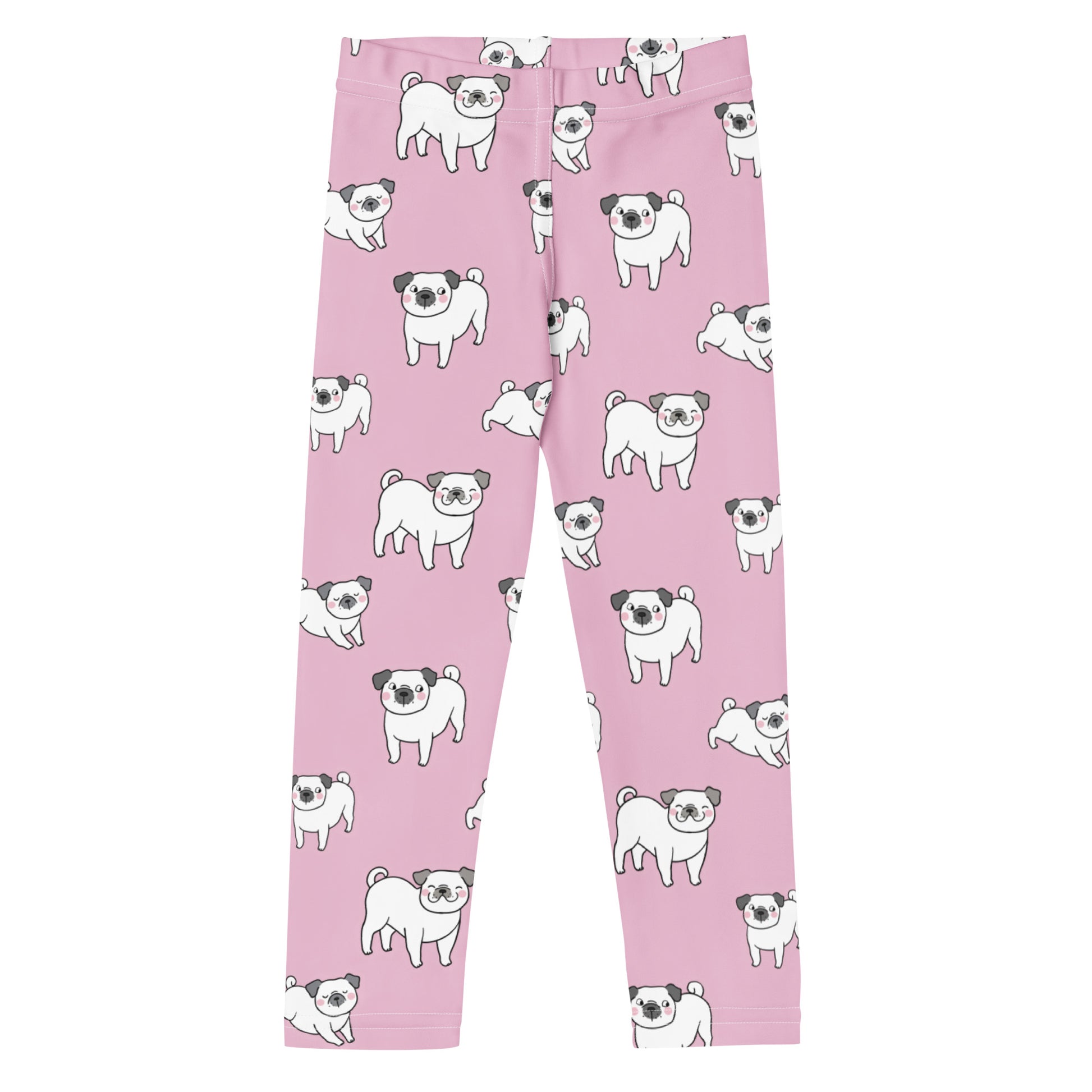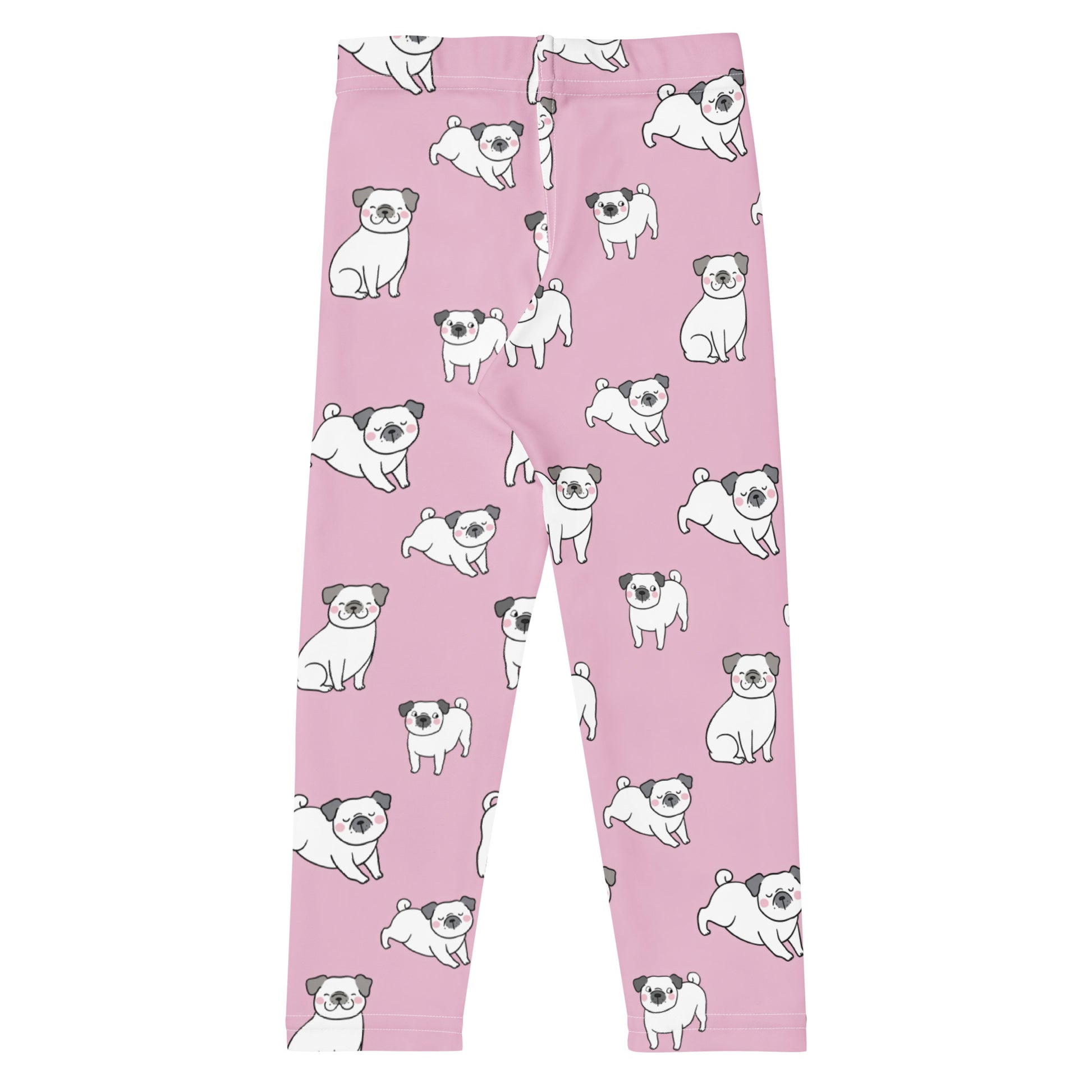 Let her show off her love for dogs with these adorable pink pug print leggings! Featuring playful cartoon-style pugs on a soft blush pink background, these girls' leggings are the perfect mix of cozy and cute.