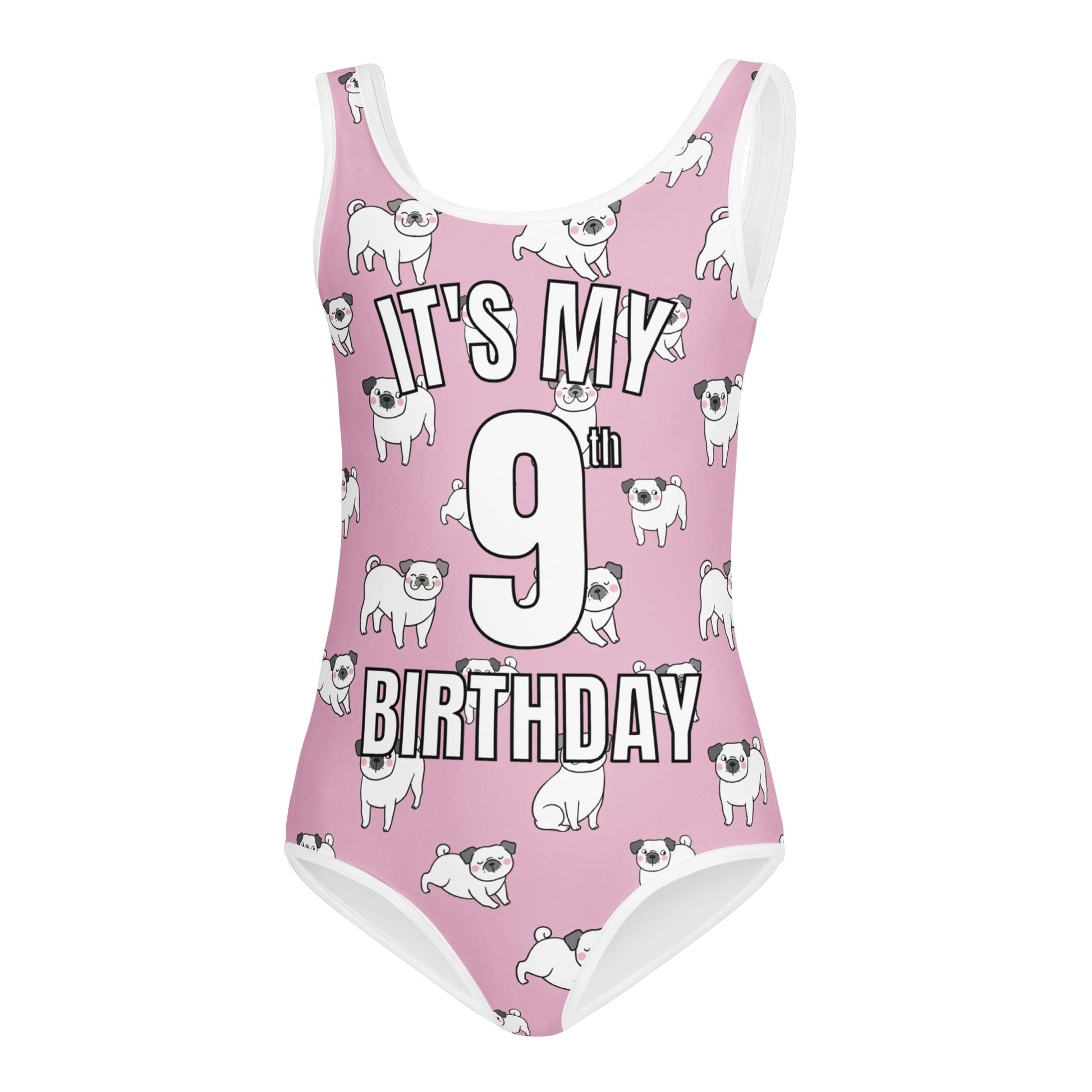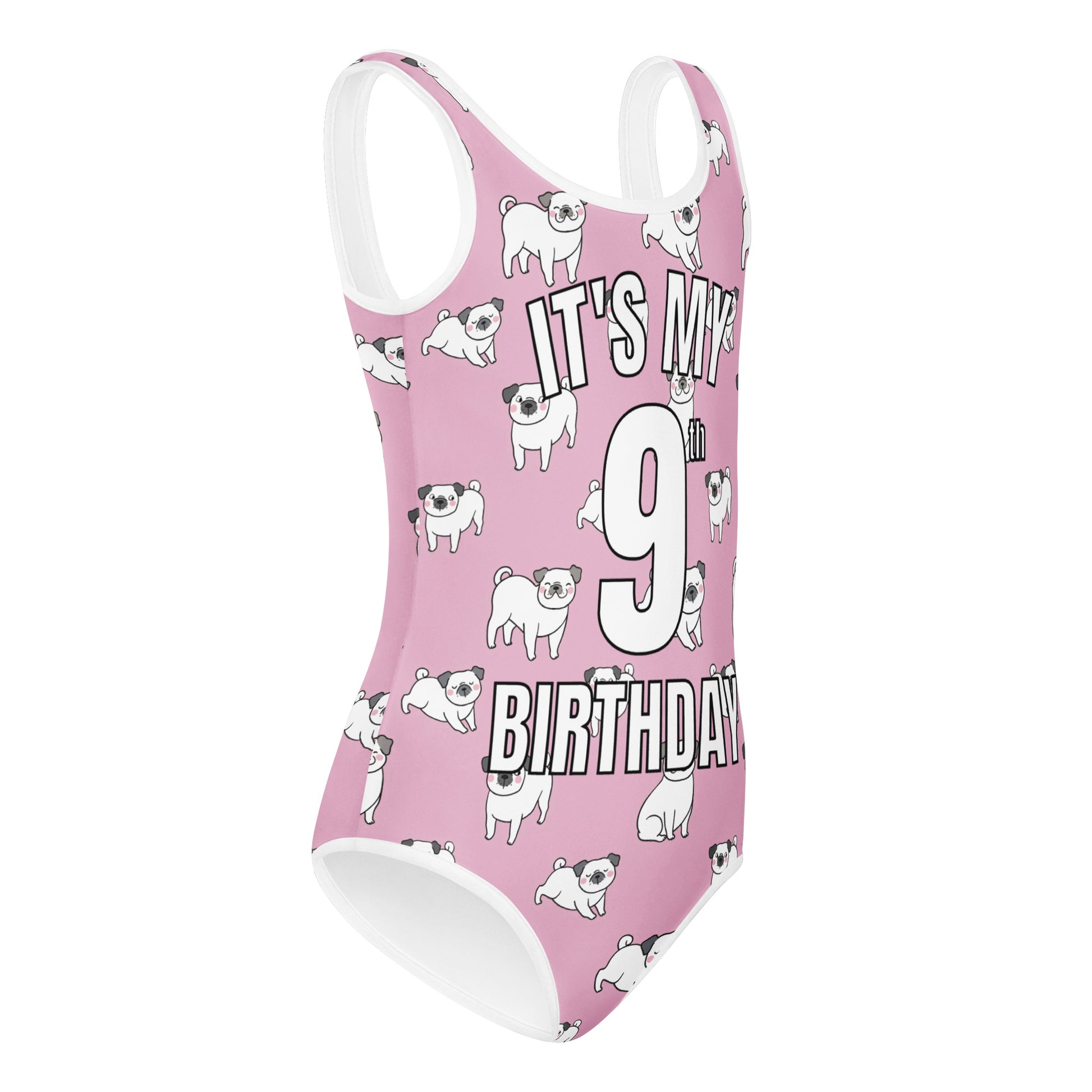 Girls Pink Pug Custom Age It's My Birthday Buttery Soft Leotard - Quick Drying For Dance and Gymnastics
