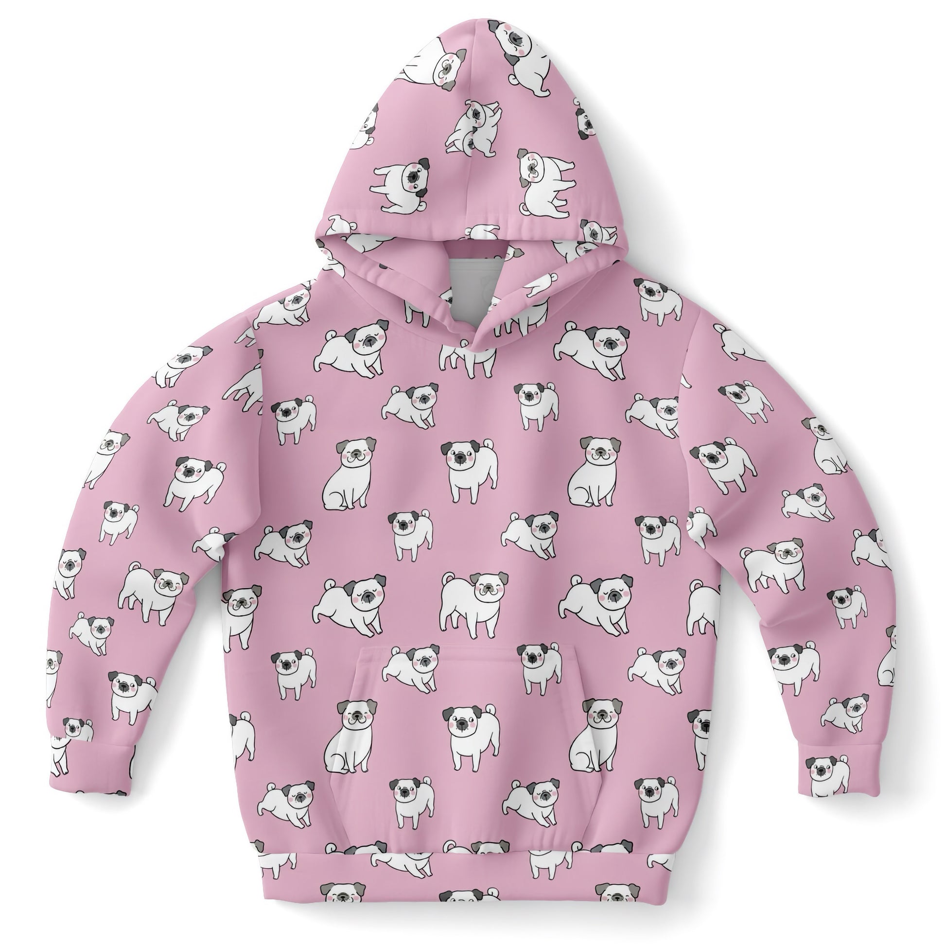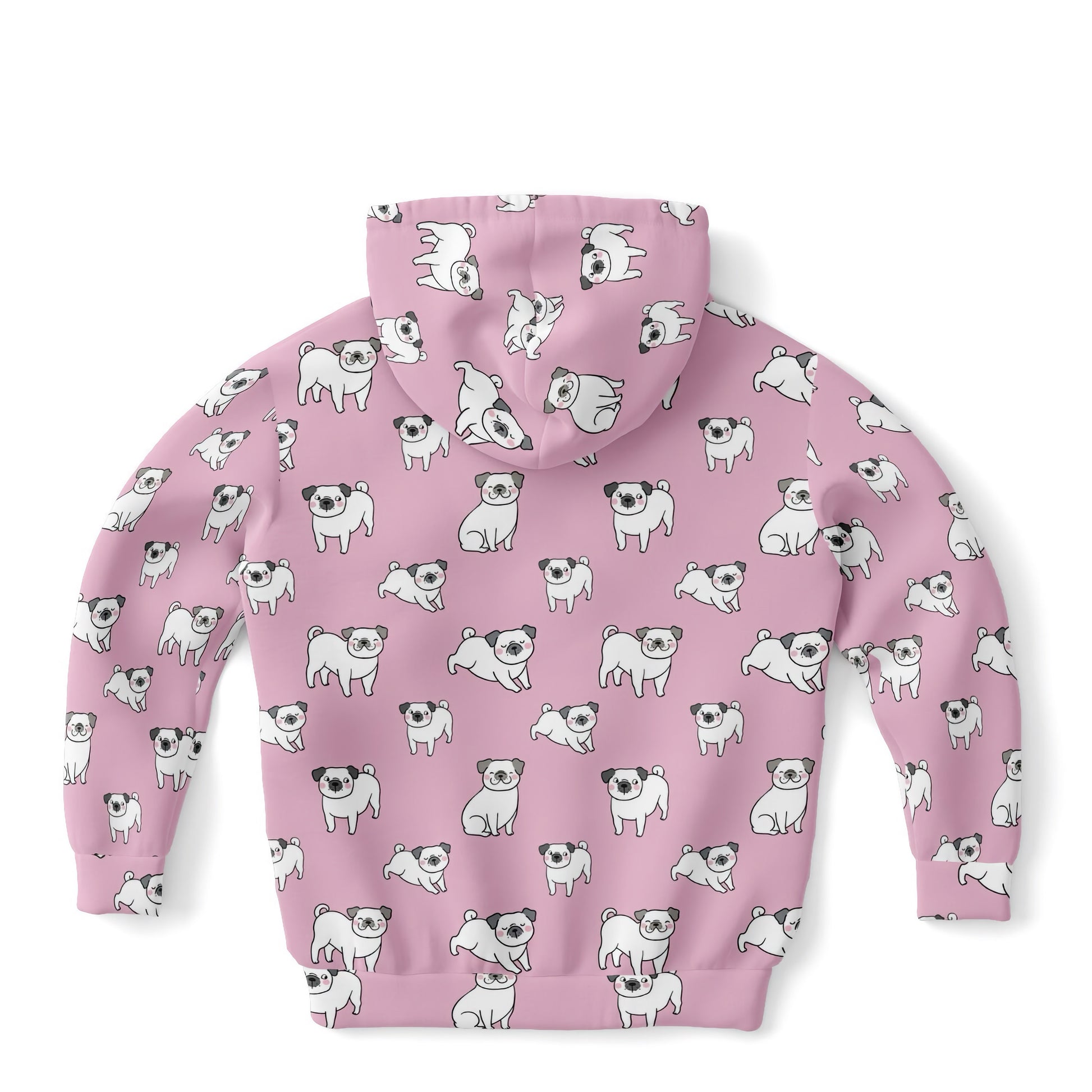 Girls Pink Pug Hoodie – Cozy Cotton Fleece or Lightweight Sports Fabric