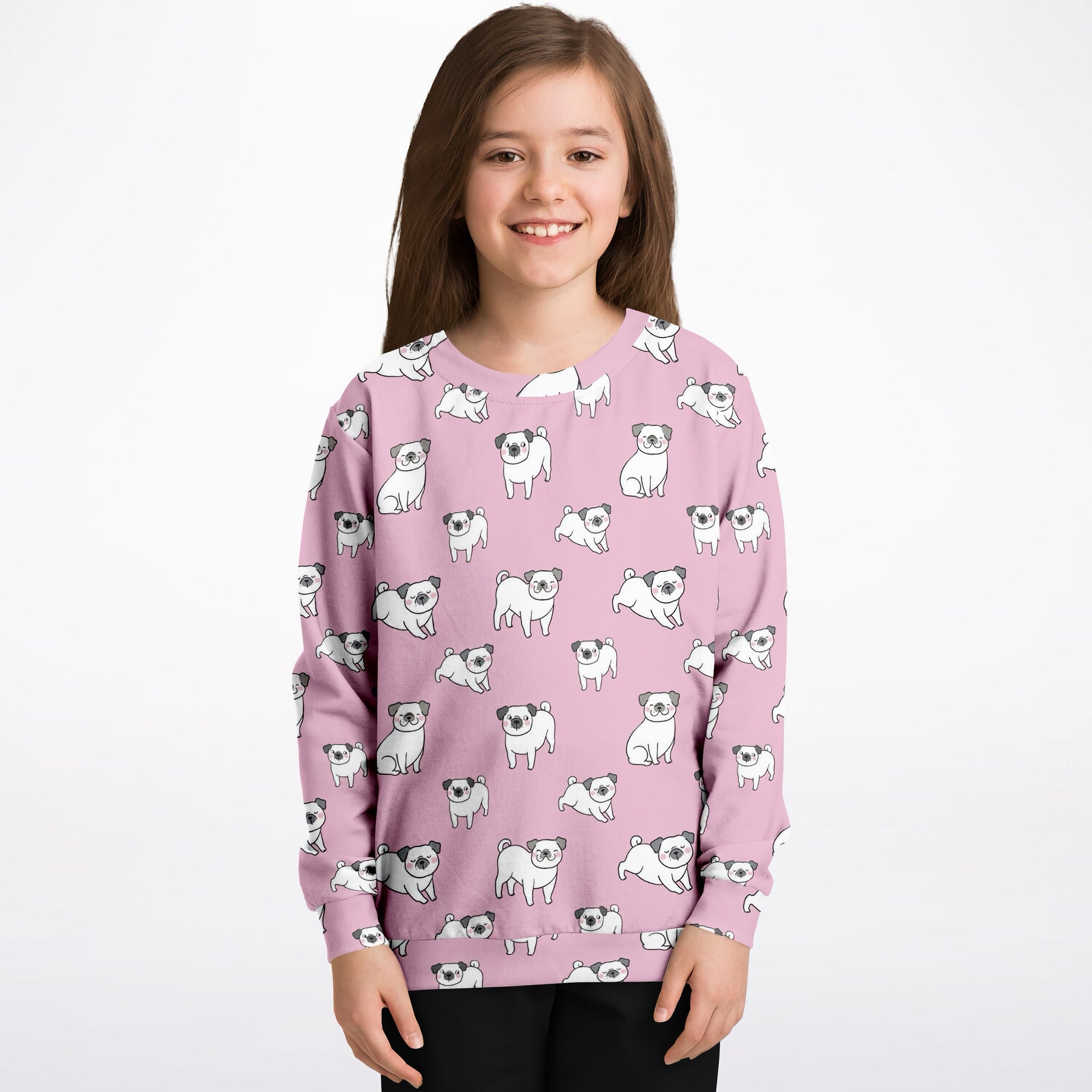 Girls Pink Pug Sweatshirt – Cozy Cotton Fleece or Lightweight Sports Fabric