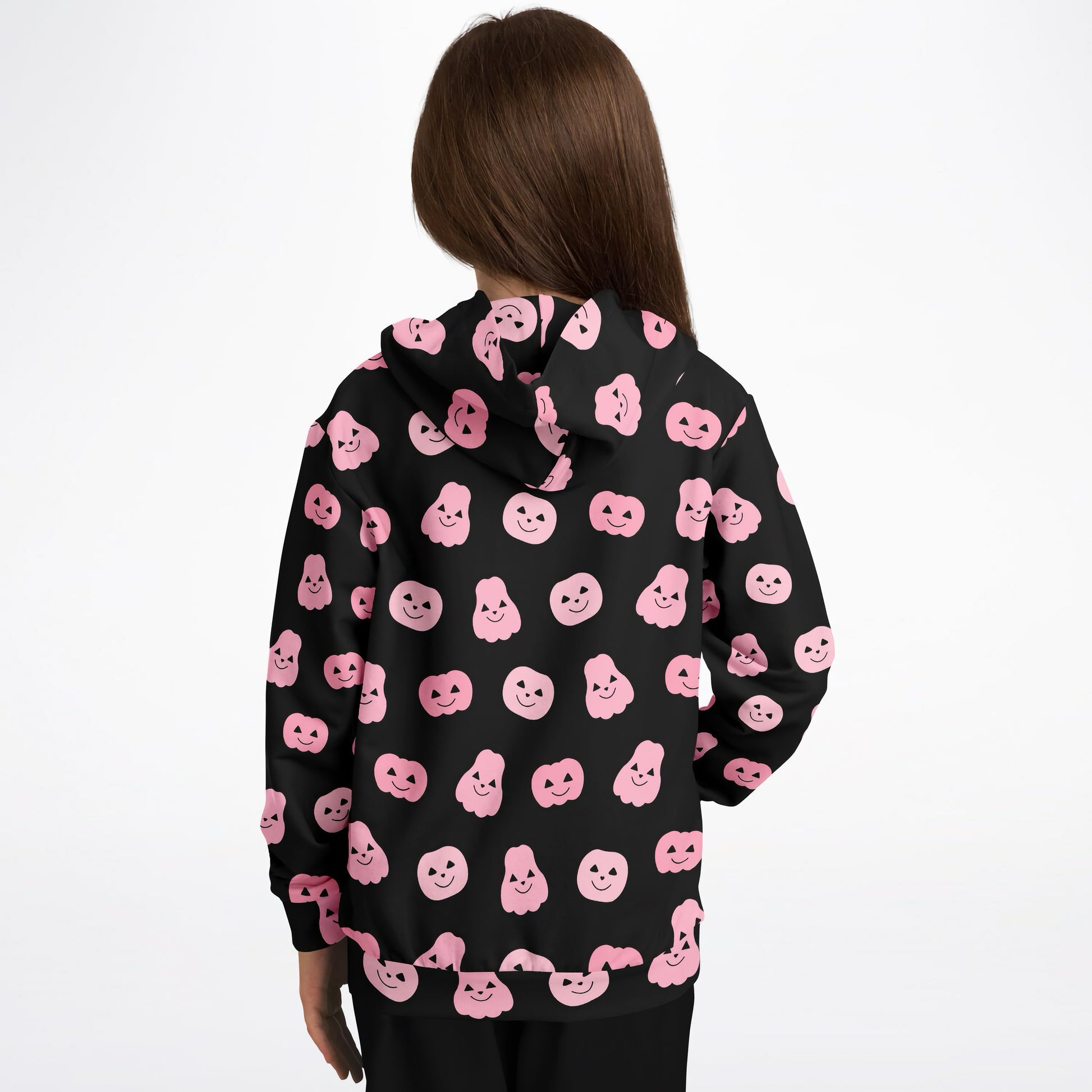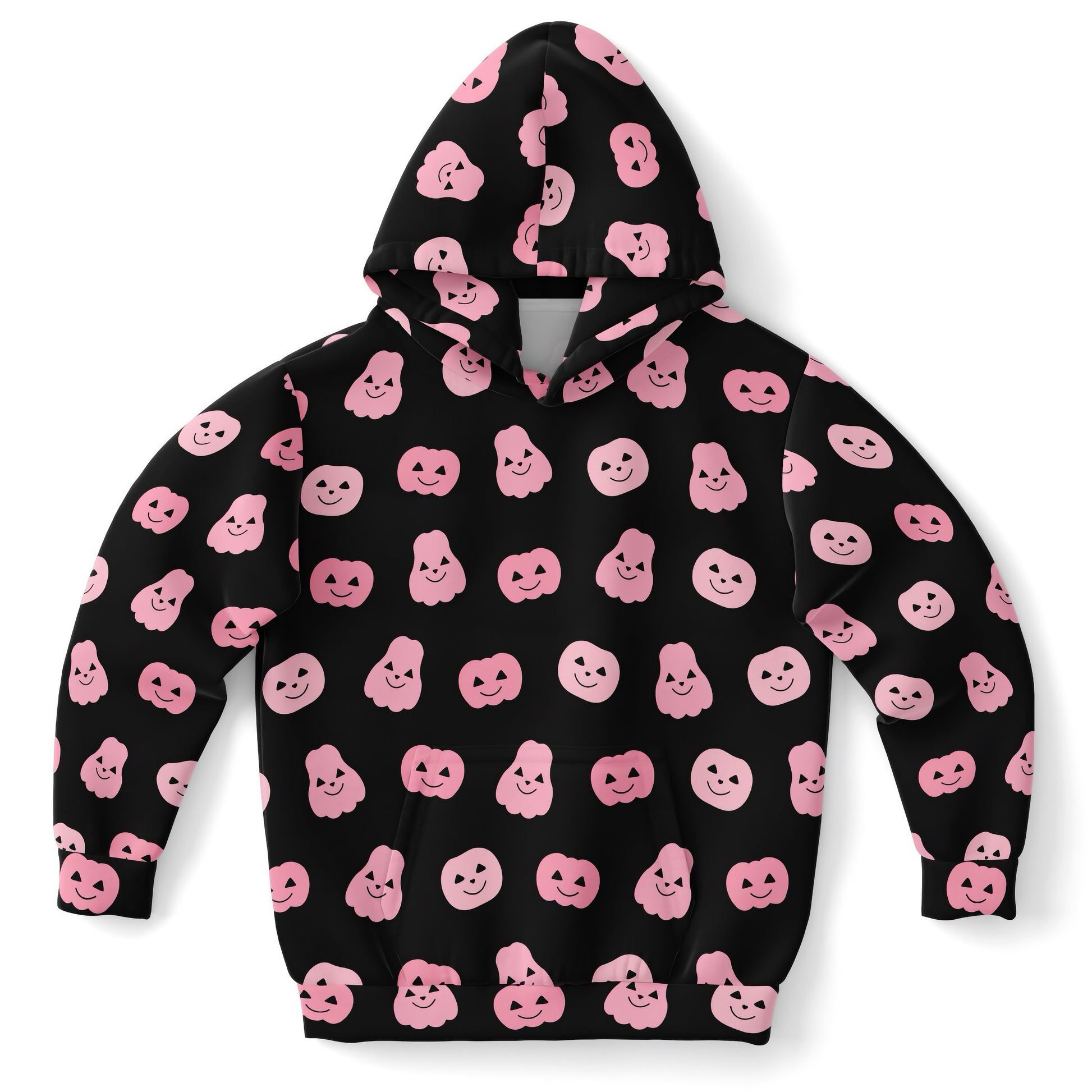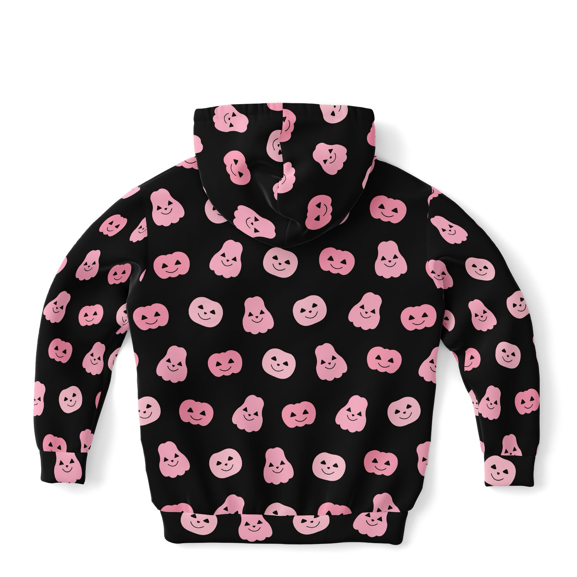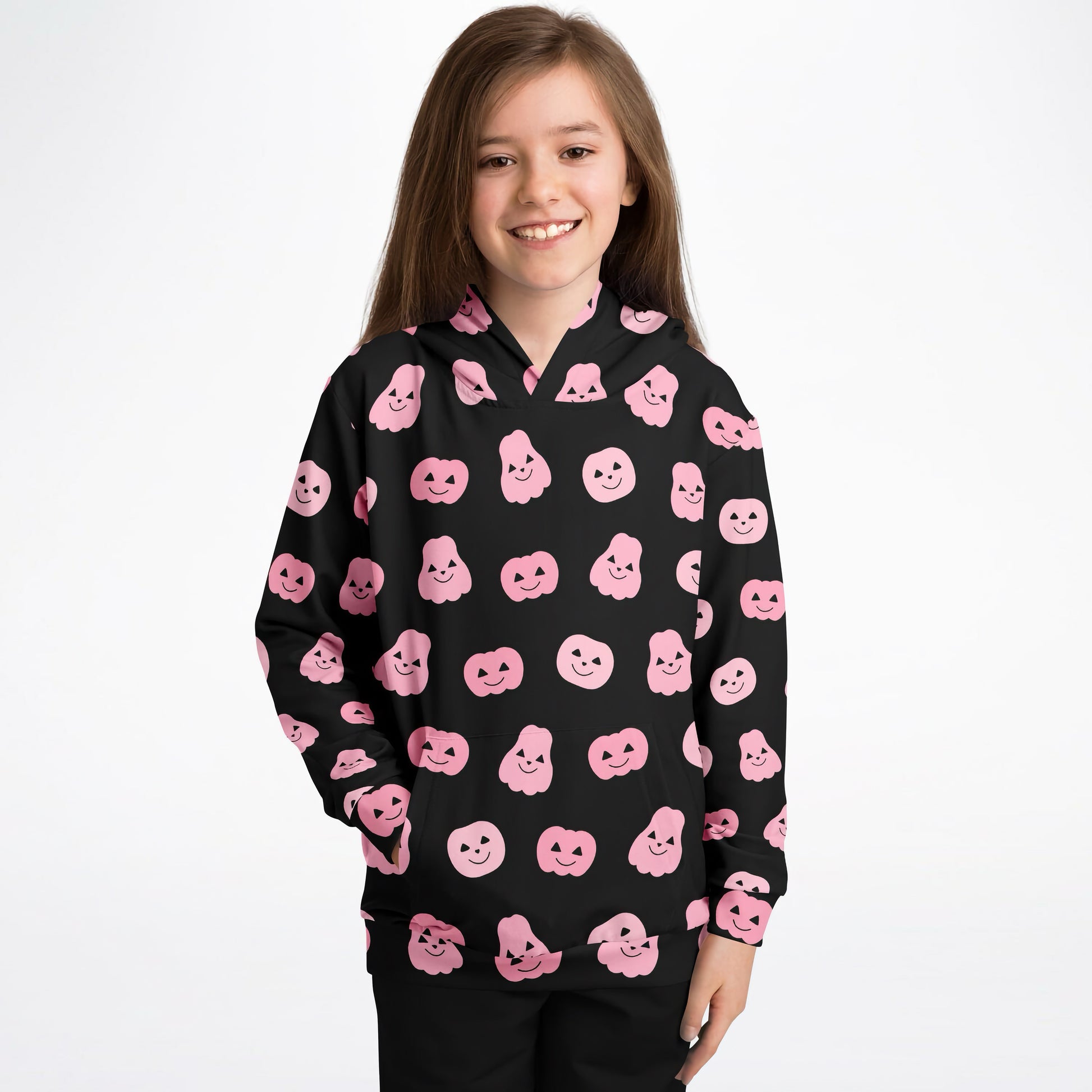 Girls Pink Pumpkins Halloween Hoodie – Cozy Cotton Fleece or Lightweight Sports Fabric