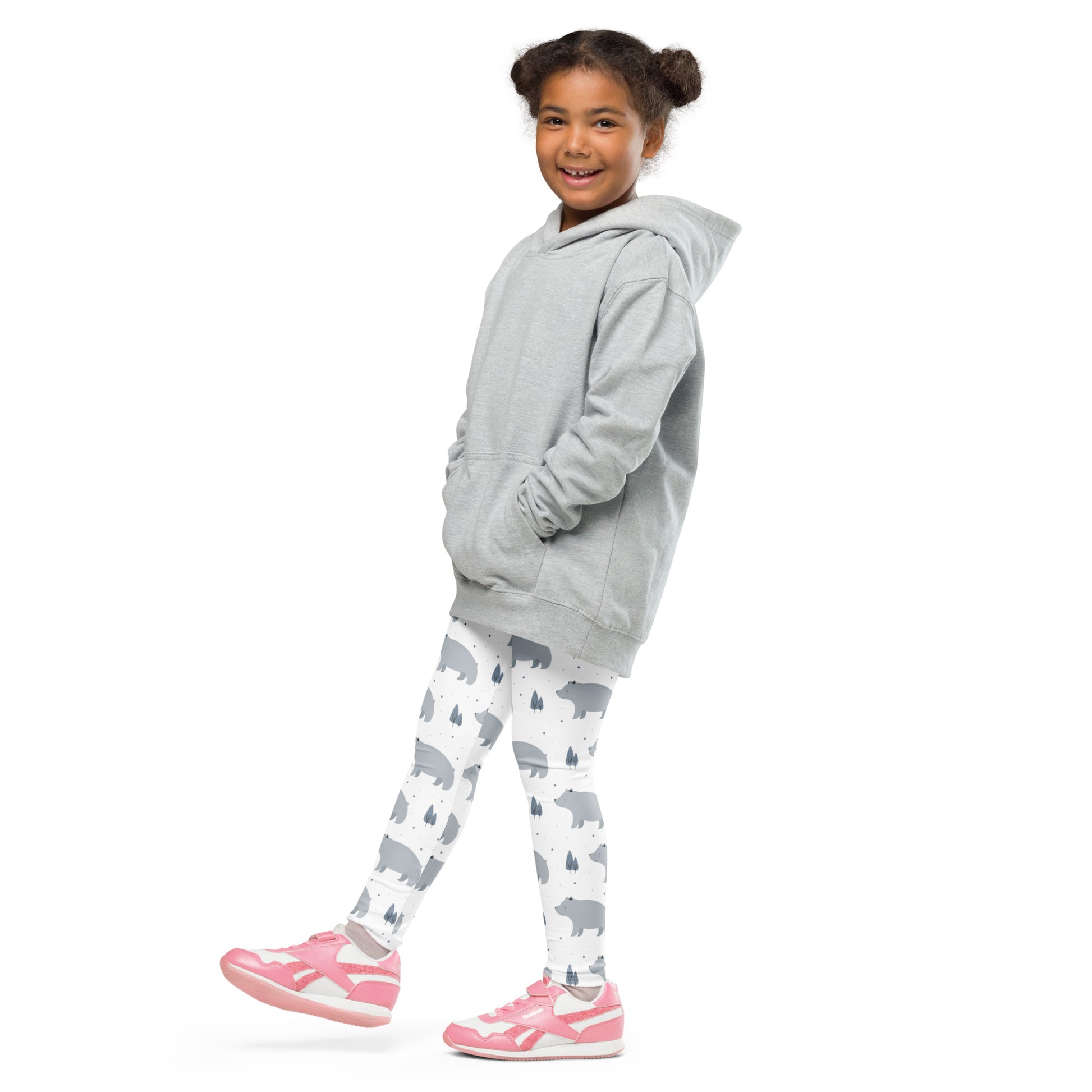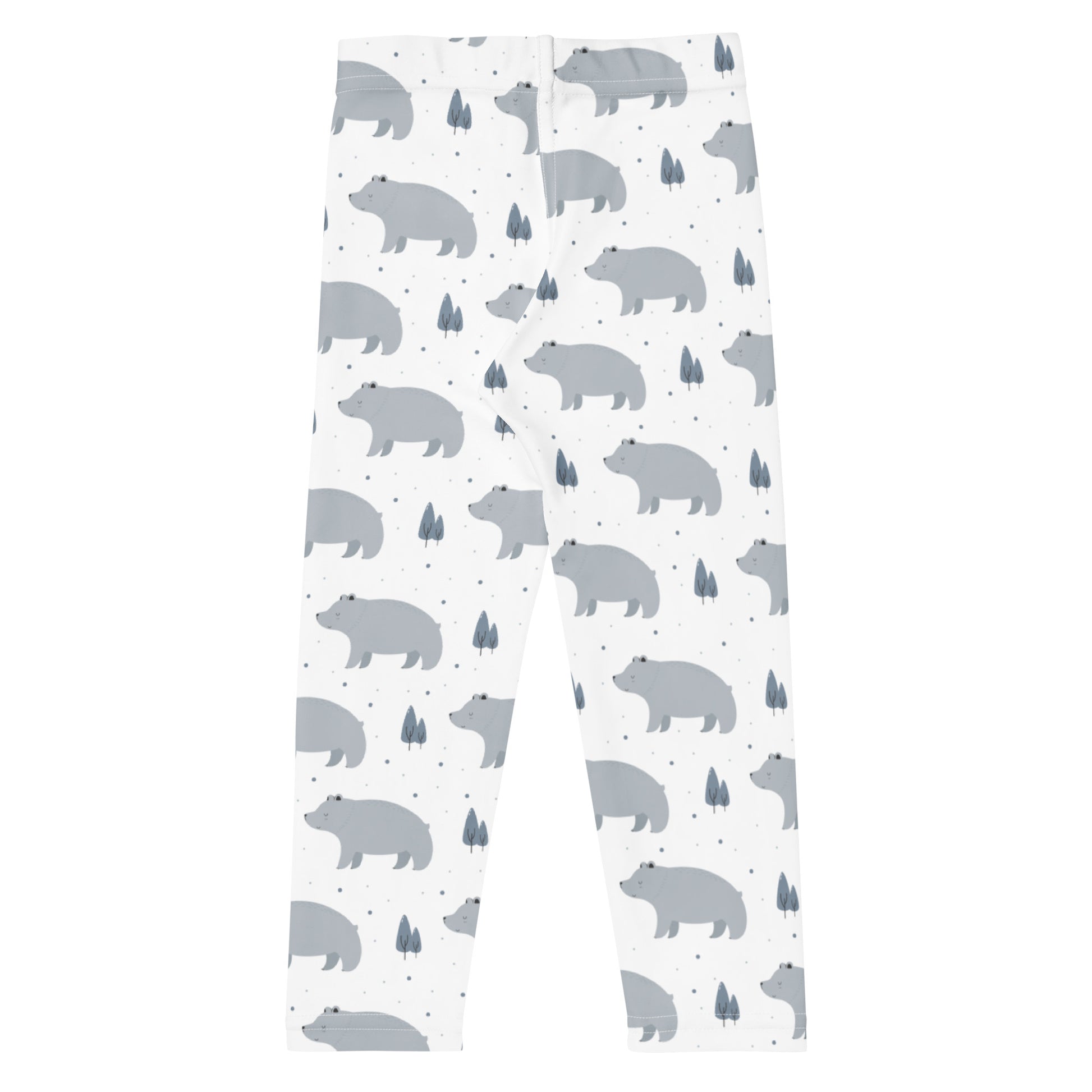 Bundle up in bear-approved style! These cozy leggings feature a calm winter forest theme, complete with soft gray bears, snowy dots, and tiny trees on a clean white background. Designed for toddlers who love animals and outdoor adventures—even if it’s just pretend!