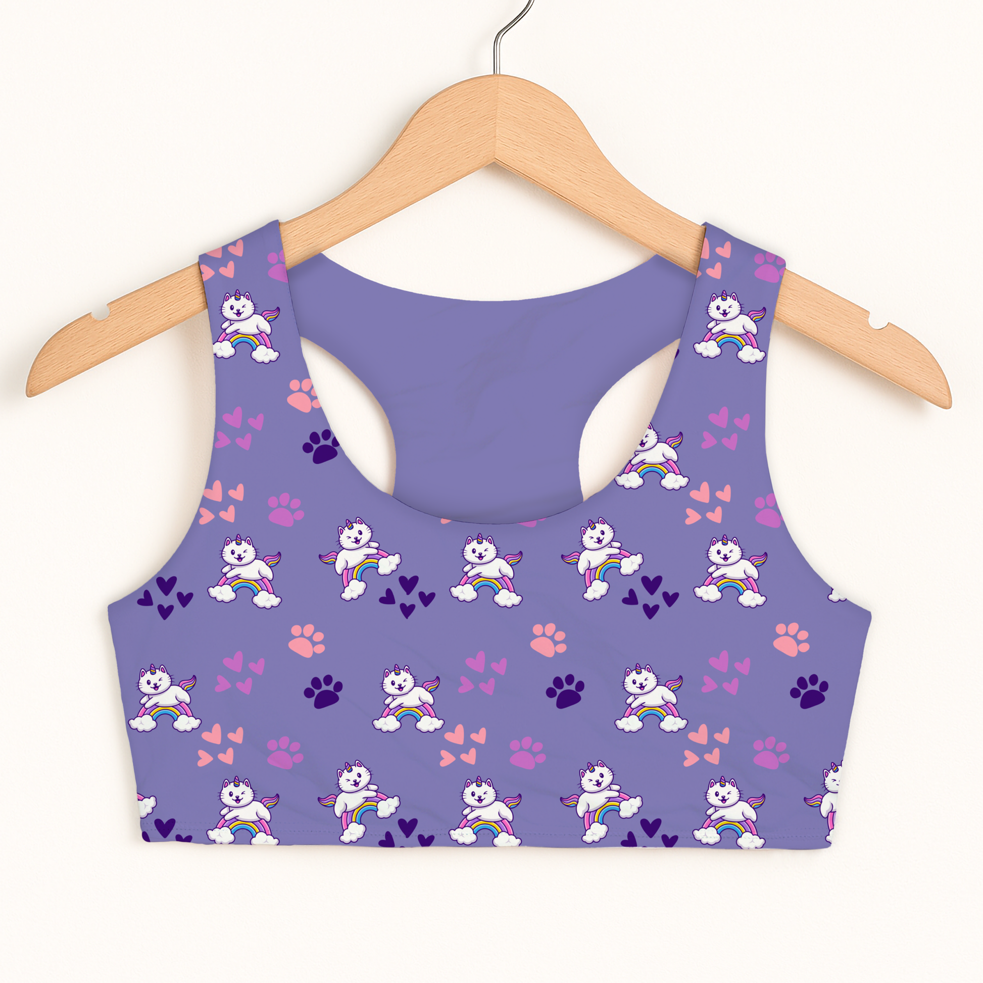 Girls Purple Caticorn Sports Bra — Quick Drying, Double Layered Comfort