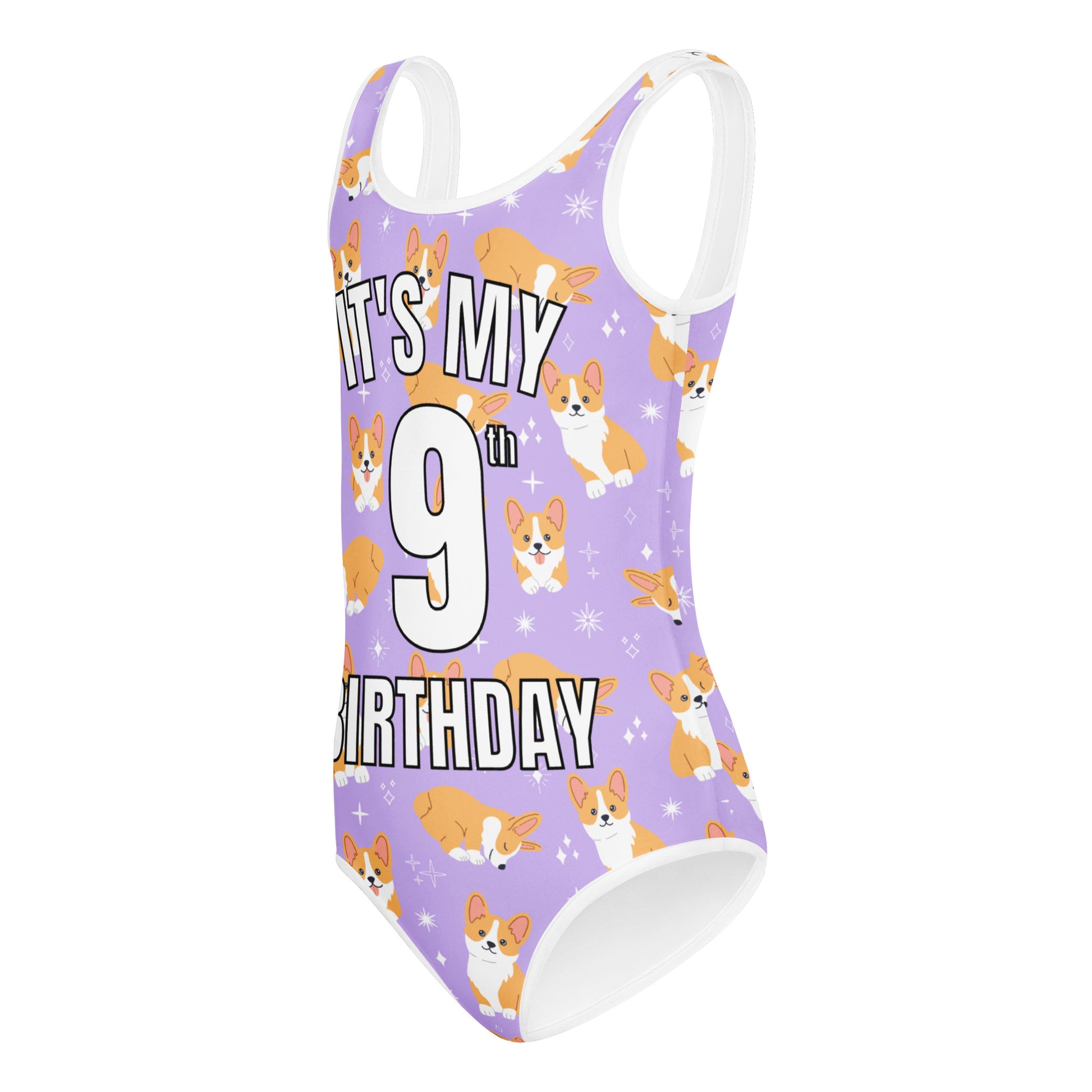 Make her birthday unforgettable in this custom age “It’s My Birthday” leotard featuring cheerful corgi pups on a soft purple backdrop. Whether she’s turning 5, 7, or 10, this personalized birthday outfit is perfect for twirling through parties, dance class, or gymnastics in total comfort.