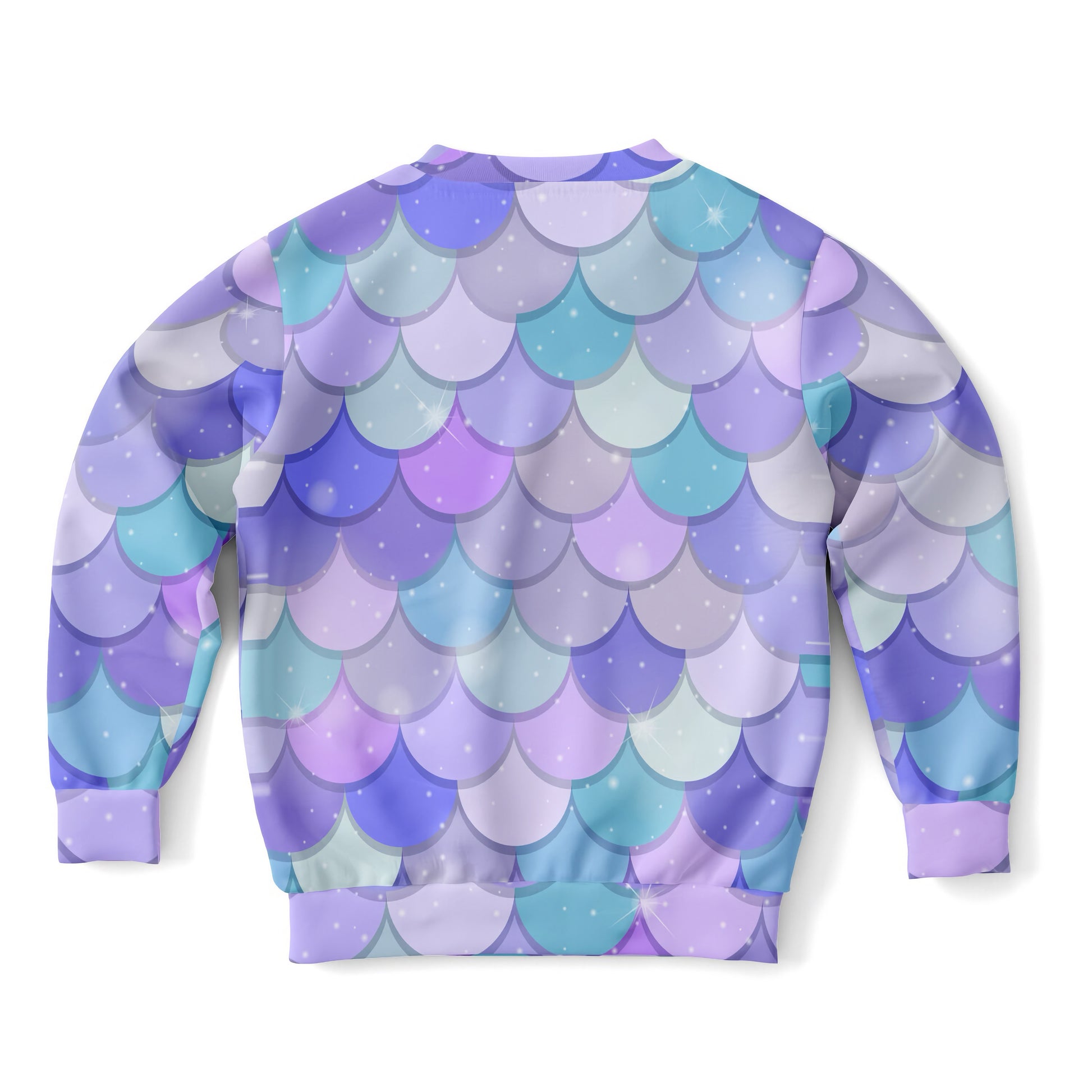 Girls Purple Mermaid Scales Sweatshirt – Cozy Cotton Fleece or Lightweight Sports Fabric