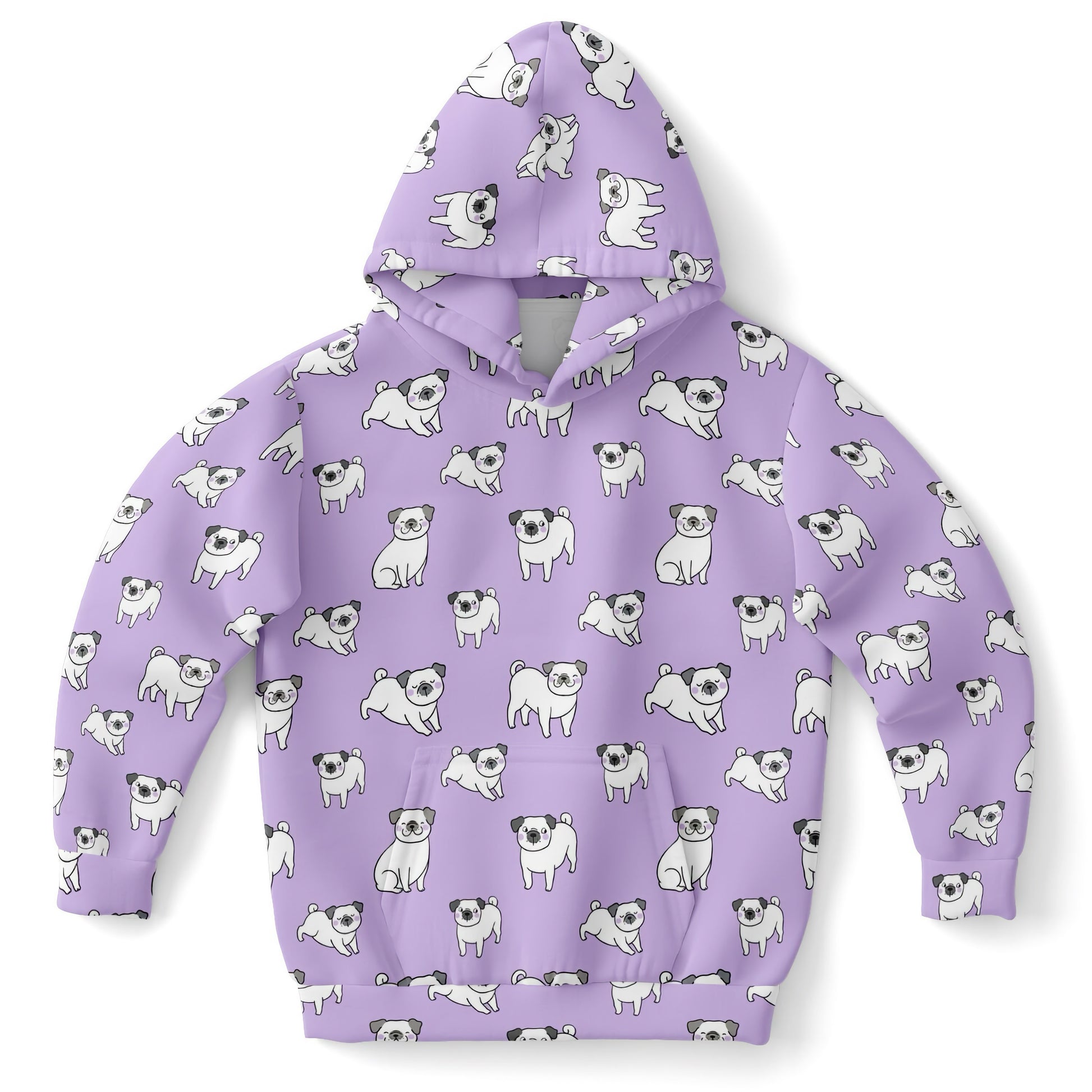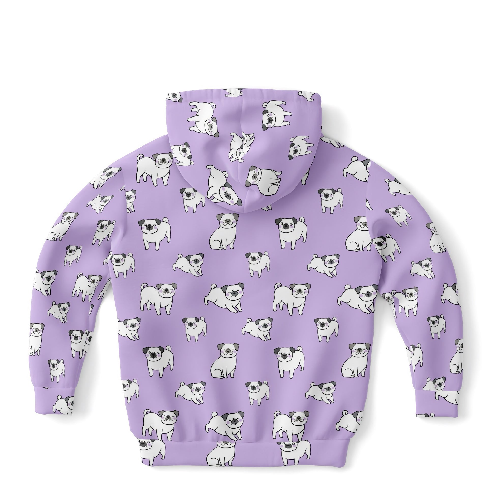 Girls Purple Pug Hoodie – Cozy Cotton Fleece or Lightweight Sports Fabric