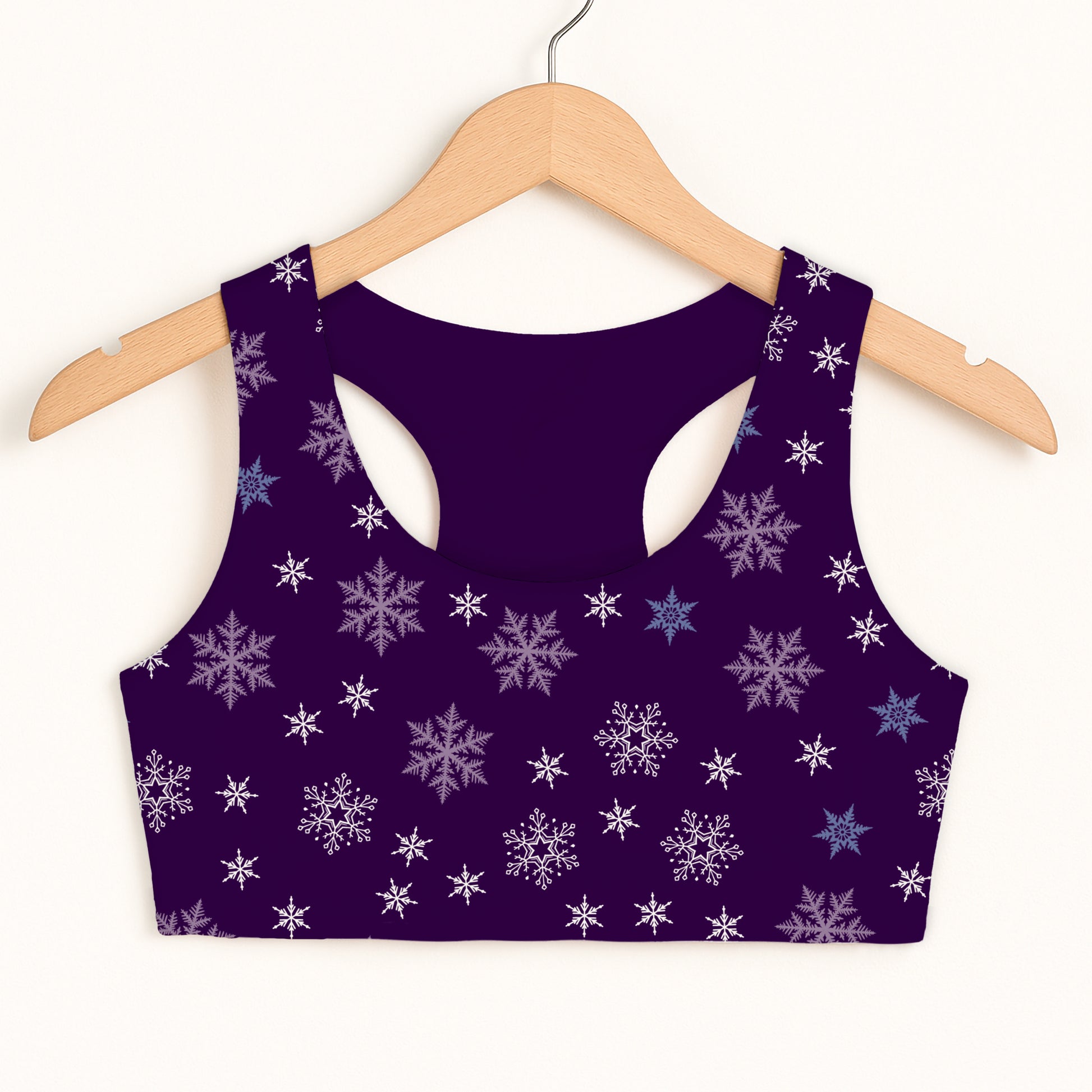 Let her sparkle this season in our girls’ purple snowflake sports bra! With its deep violet background and delicate snowflakes, this winter-themed top is perfect for dance practice, gymnastics, or cozy holiday lounging. The soft, stretchy fabric offers comfort and support while keeping her festive and stylish all season long.