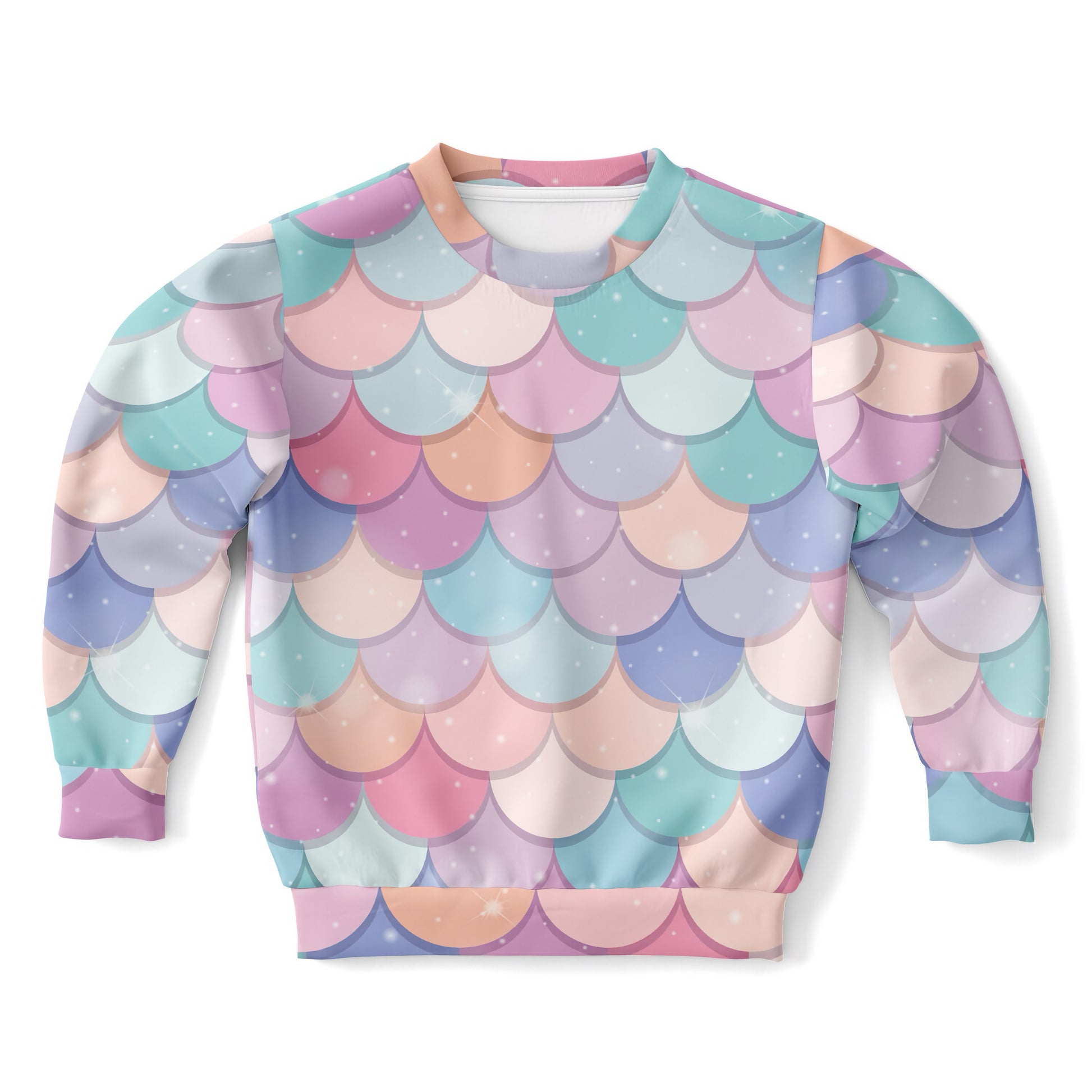 Girls Rainbow Mermaid Scales Sweatshirt – Cozy Cotton Fleece or Lightweight Sports Fabric