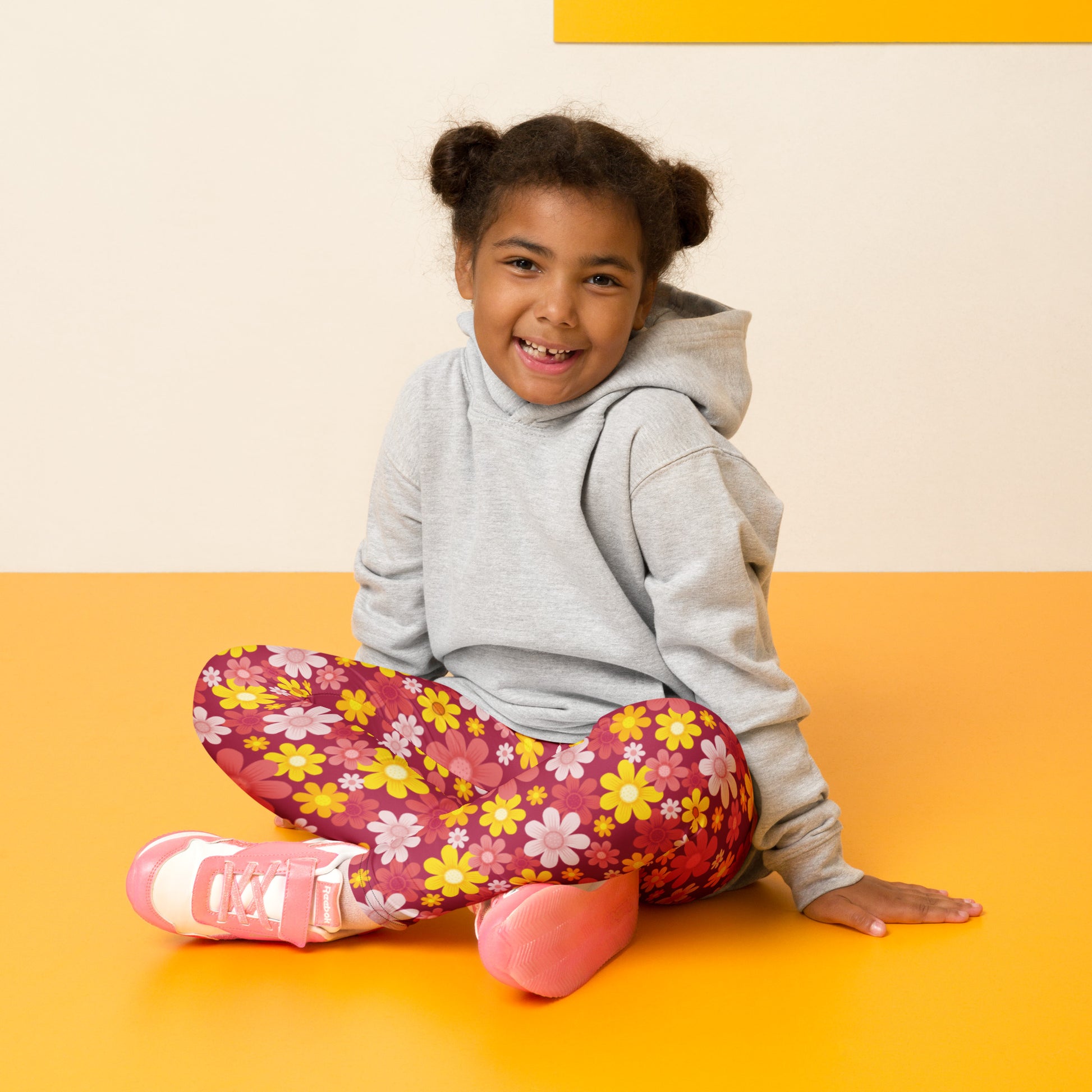 Let her style bloom! These girls floral leggings for toddlers and kids feature a sweet all-over flower print in cheerful shades of yellow, pink, and coral. Whether she's off to school, daycare, or a weekend playdate, these soft, stretchy leggings are made for comfort and movement.