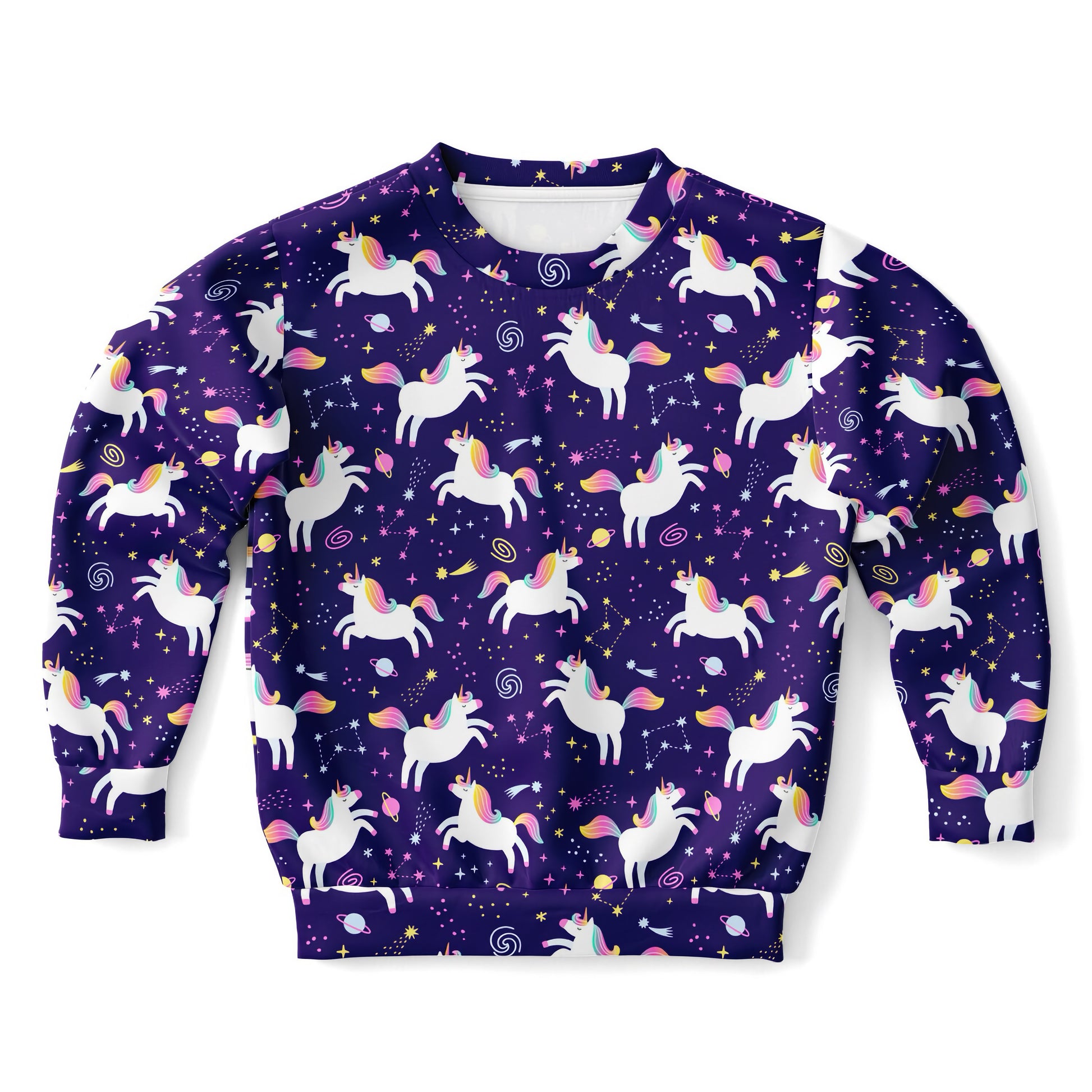 Girls Space Unicorn Sweatshirt – Cozy Cotton Fleece or Lightweight Sports Fabric