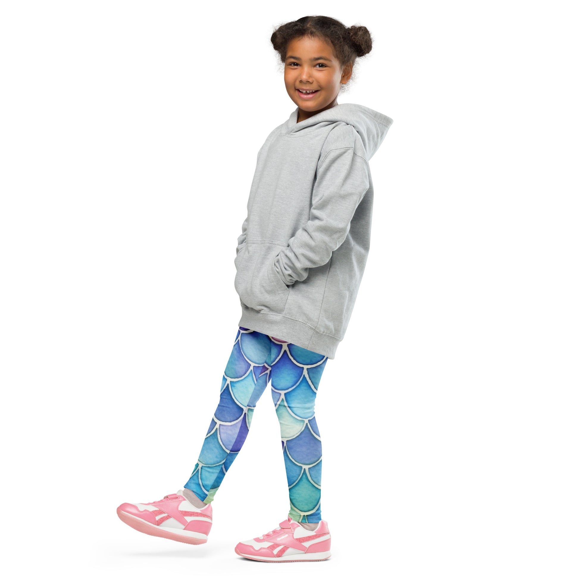 Make waves with these dreamy mermaid leggings—perfect for girls who love magic, the ocean, and a splash of color! Featuring a stunning watercolor scale pattern in pastel purples, blues, and seafoam greens, these buttery soft leggings are made to move, play, and twirl through every adventure.