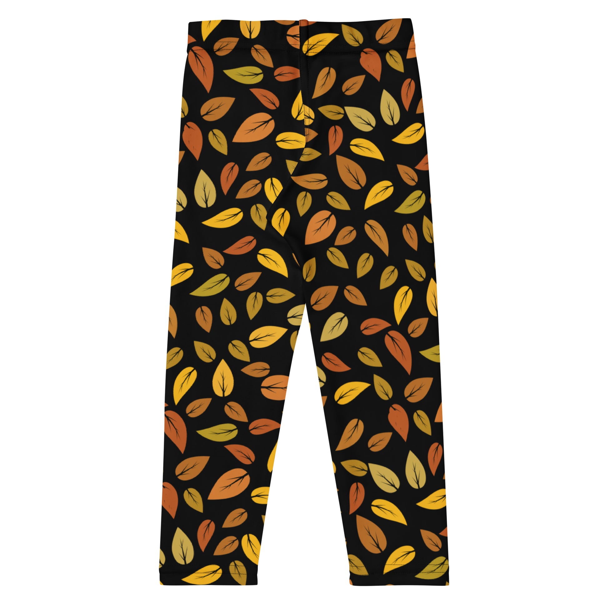 Celebrate autumn in style with these kids’ fall leggings featuring a bold leaf pattern in rich yellow, orange, and brown on a sleek black background. Perfect for pumpkin patch trips, cozy school days, or Thanksgiving gatherings, these leggings add seasonal charm to any outfit. Made with buttery-soft stretch fabric, they keep toddlers and kids comfortable all day long. With UPF 50+ protection and durable stitching, they’re practical enough for both outdoor play and everyday wear.