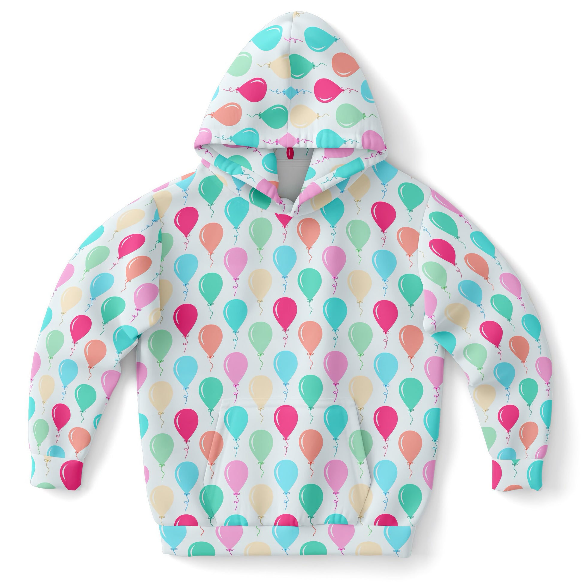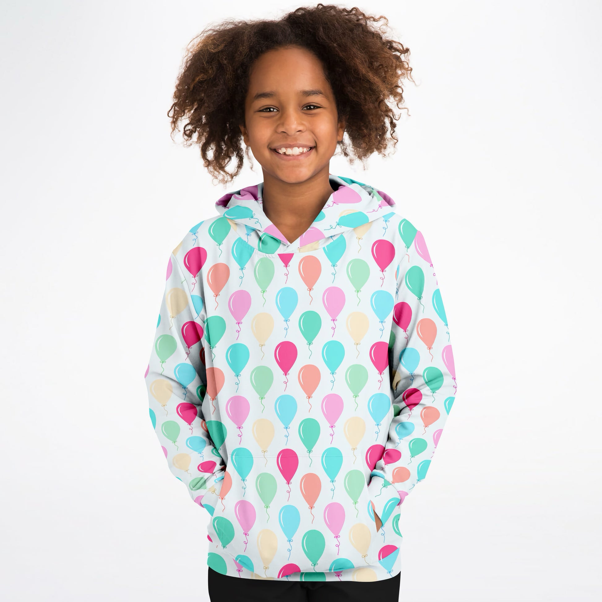 Kids Birthday Balloons Hoodie – Cozy Cotton Fleece or Lightweight Sports Fabric