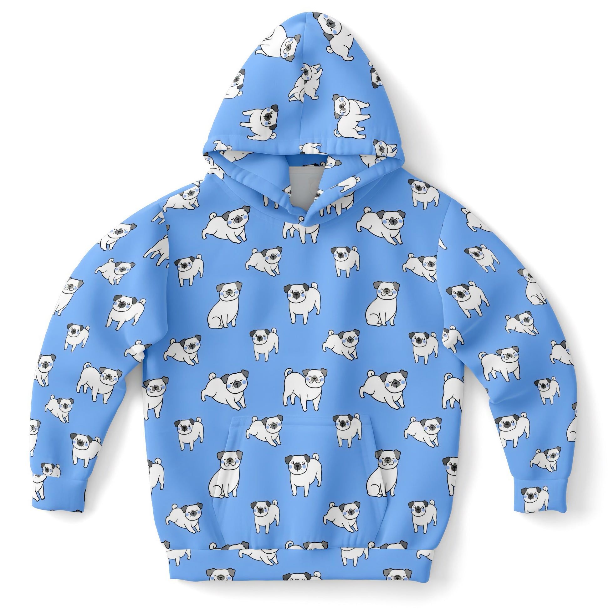 Kids Blue Pug Hoodie – Cozy Cotton Fleece or Lightweight Sports Fabric