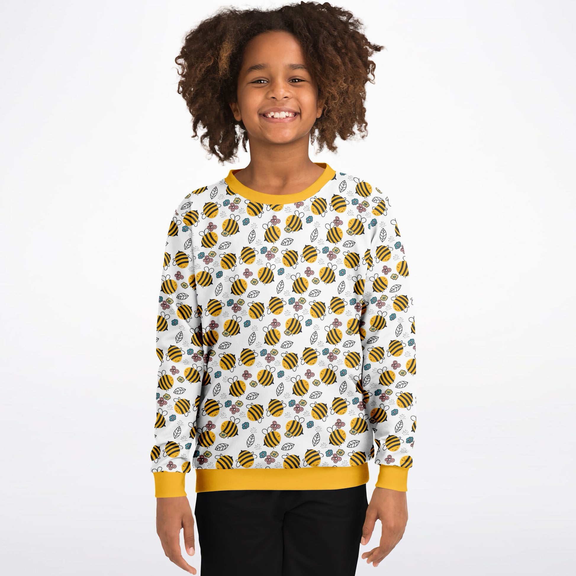Kids Bumble Bee Sweatshirt – Cozy Cotton Fleece or Lightweight Sports Fabric