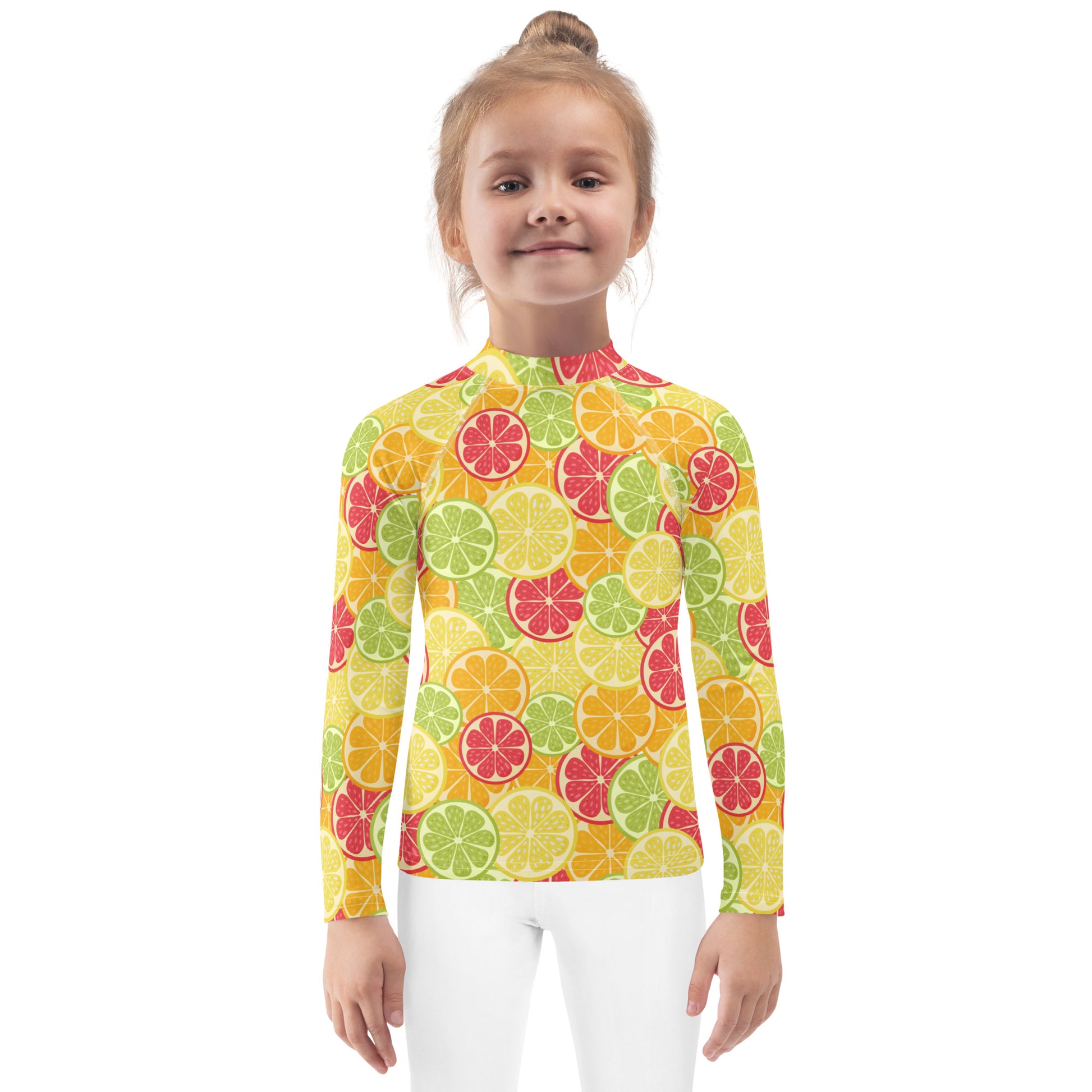 Kids Citrus Fruit Long Sleeve Rash Guard Swim Shirt With UPF 50+
