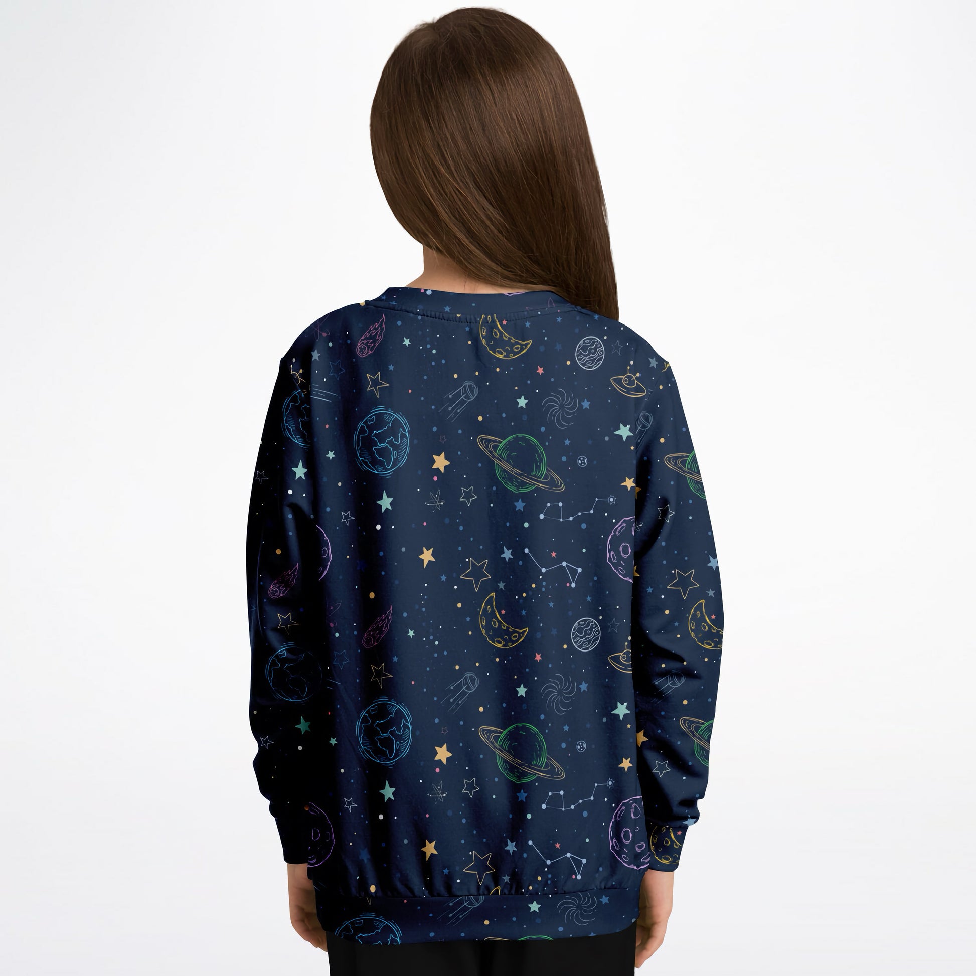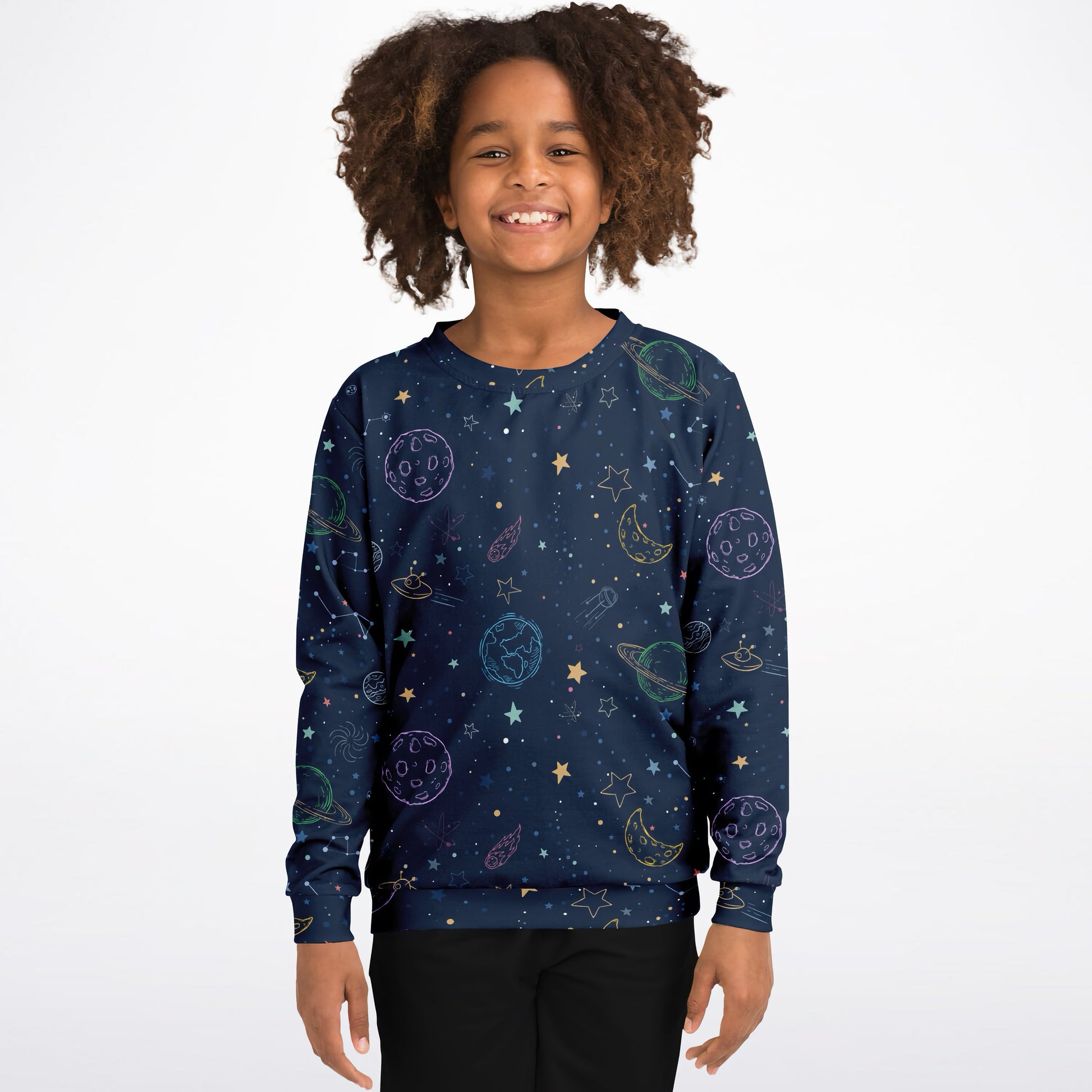 Kids Colorful Galaxy Space Sweatshirt – Cozy Cotton Fleece or Lightweight Sports Fabric