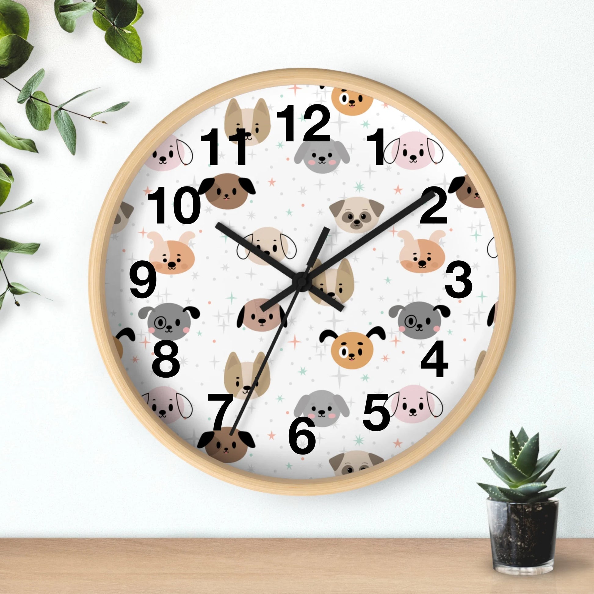 Bring wag-worthy charm to your child’s space with our Kids' Dog Face Silent Wood Wall Clock. Featuring an adorable puppy faces design that’s equal parts cute and cheerful, this clock is perfect for toddler rooms, dog-themed nurseries, or any young animal lover’s space.