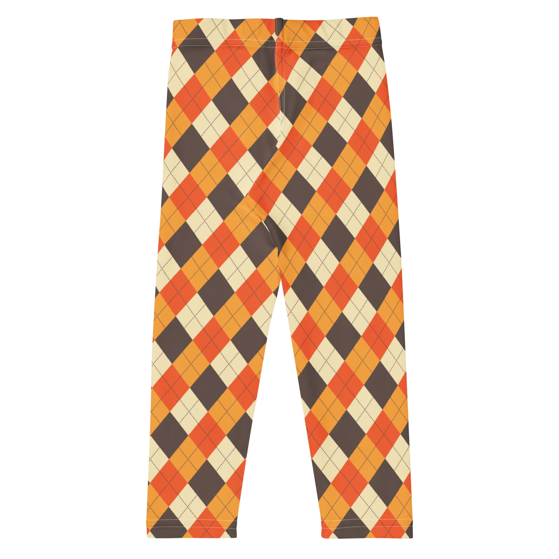 Perfect for cozy autumn days and Thanksgiving get-togethers, these toddler and kids' leggings feature a warm argyle print in seasonal shades of pumpkin orange, golden yellow, chocolate brown, and cream. Whether she’s apple picking or lounging at home, these leggings are built for all-day comfort and fall flair.