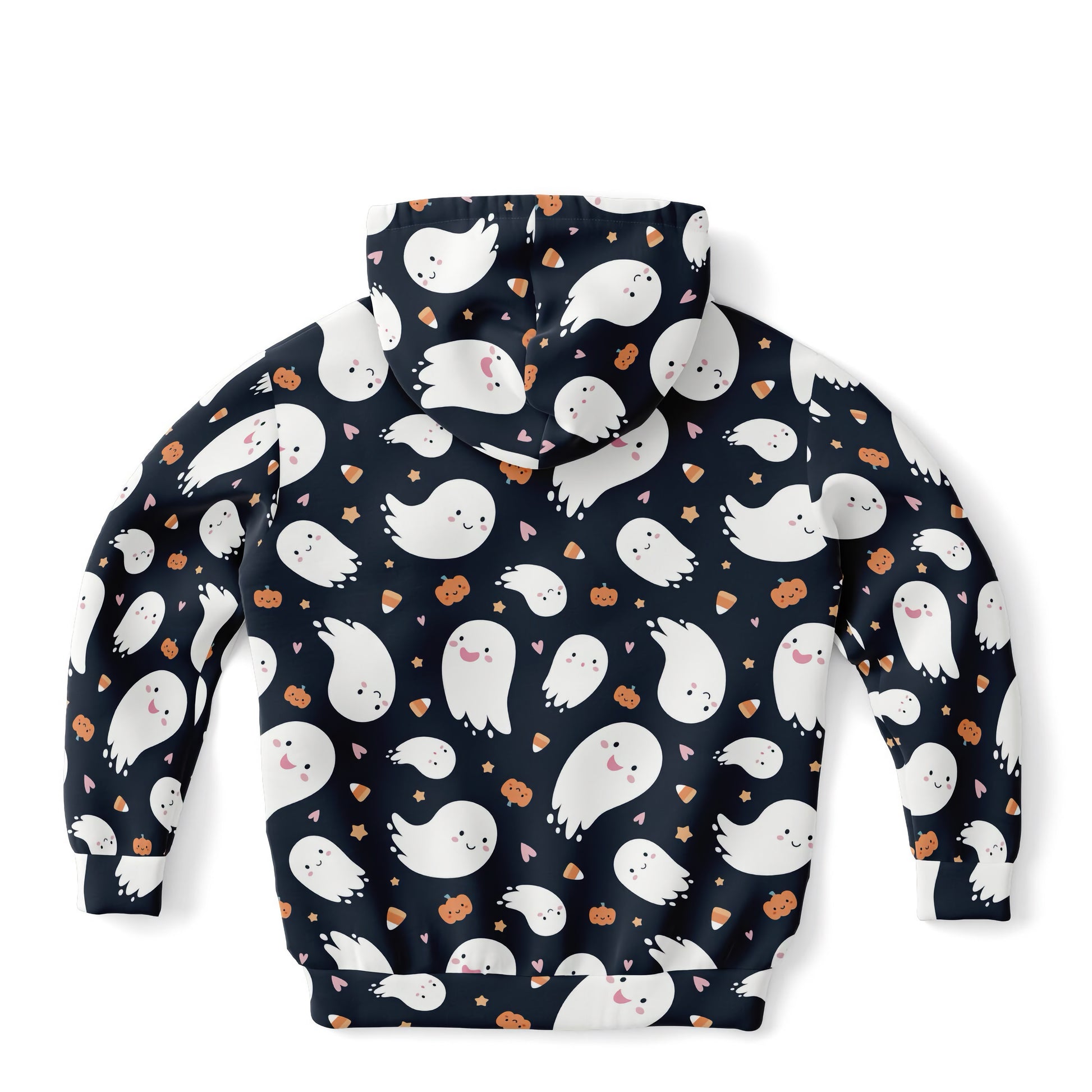 Kids Ghost Halloween Hoodie – Cozy Cotton Fleece or Lightweight Sports Fabric