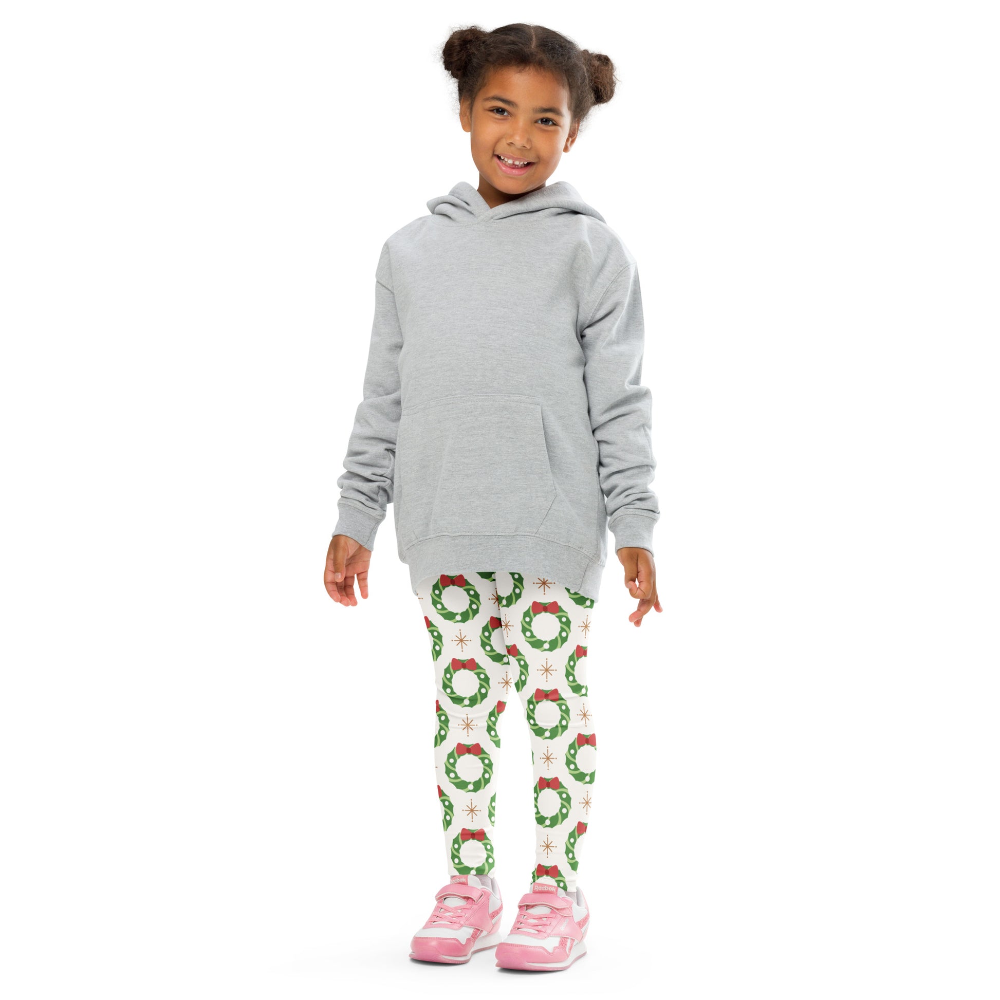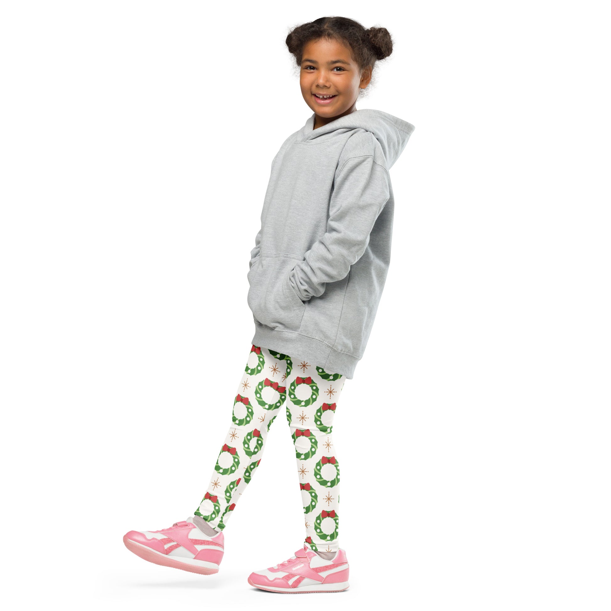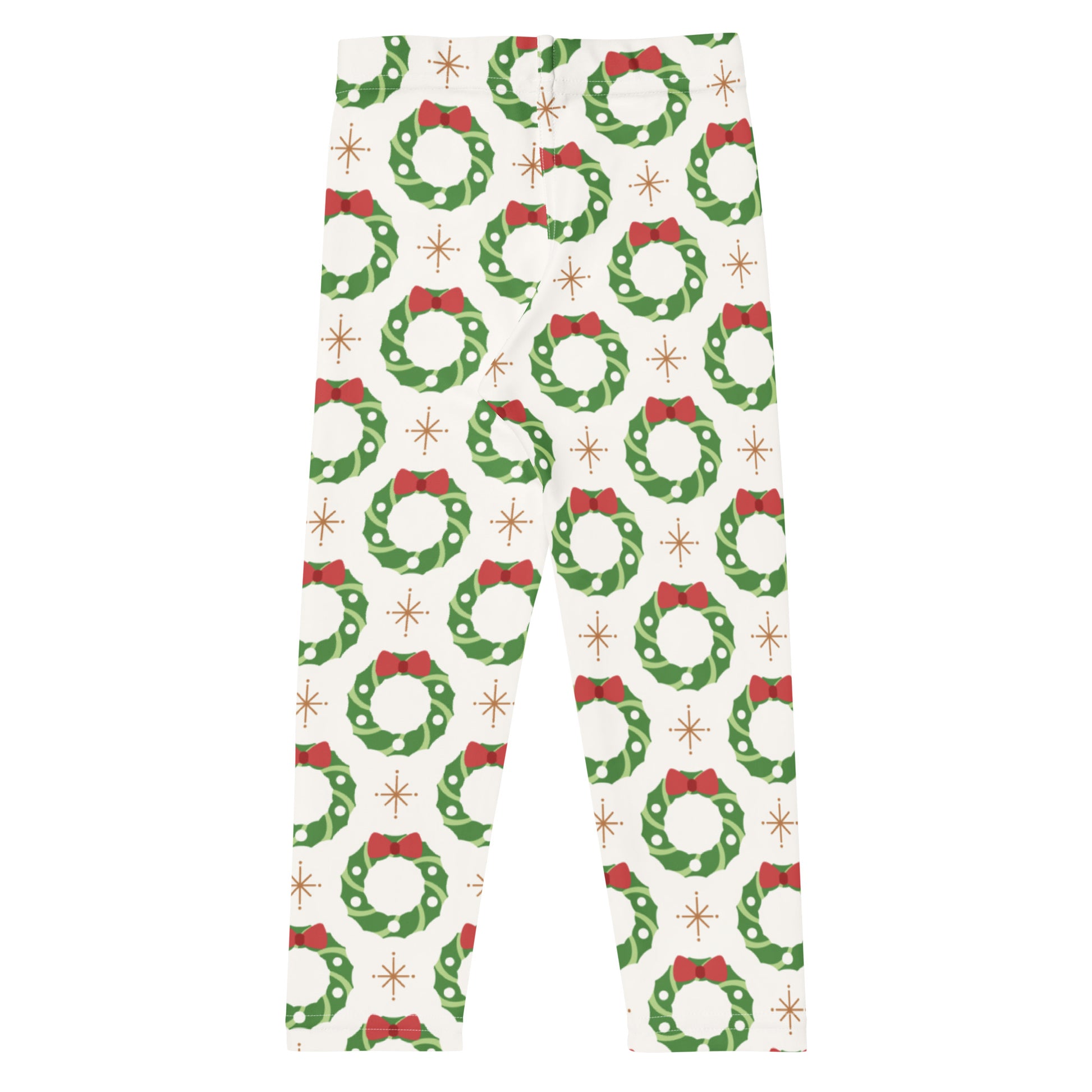 Let your little one shine this holiday season with these festive leggings! Covered in cheerful green wreaths with bright red bows and golden starbursts, these buttery soft leggings are perfect for holiday parties, family photos, cozy days at home, and spreading seasonal cheer everywhere they go.
