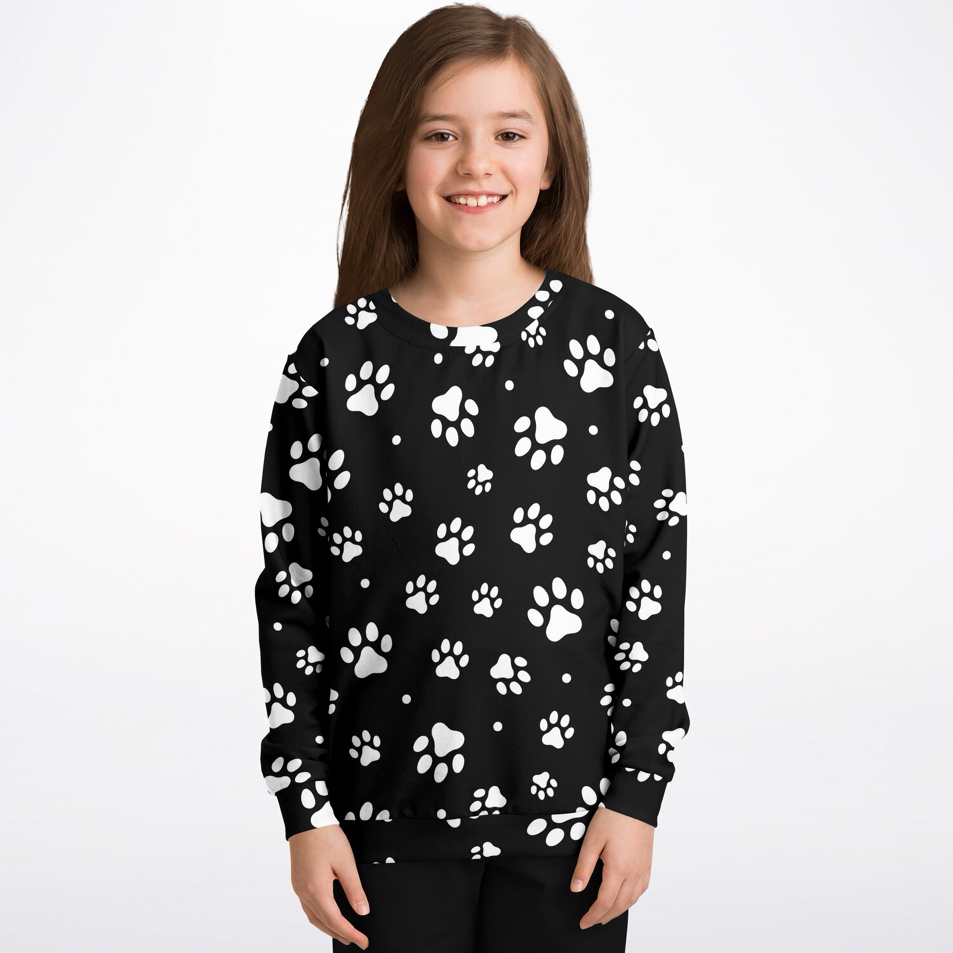 Kids Paw Print Sweatshirt – Cozy Cotton Fleece or Lightweight Sports Fabric